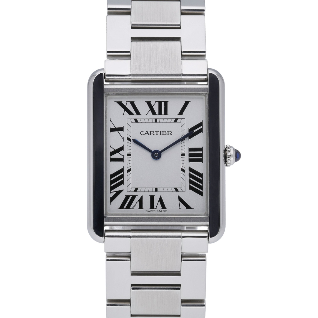 A Cartier Tank Solo Watch, Stainless Steel on a Silver Dial