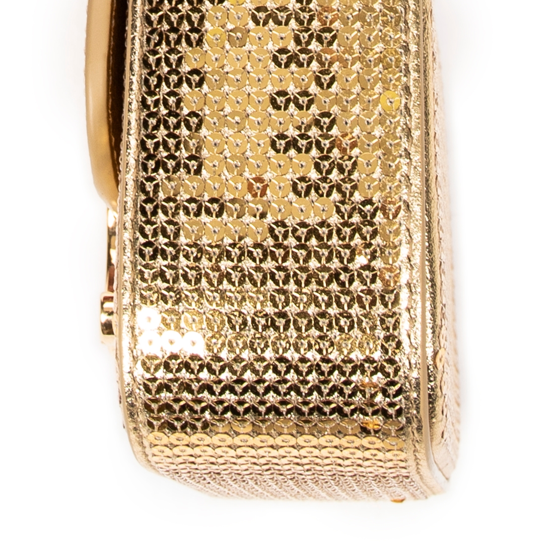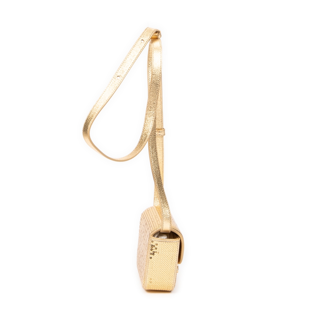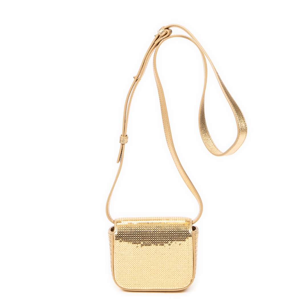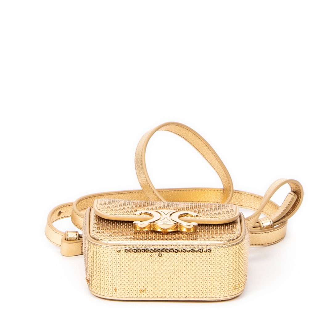A vintage Celine gold canvas Ltd. Ed. Mini Triomphe Crossbody bag with a certificate of authenticity, Approximately 10cm height, 11cm width.