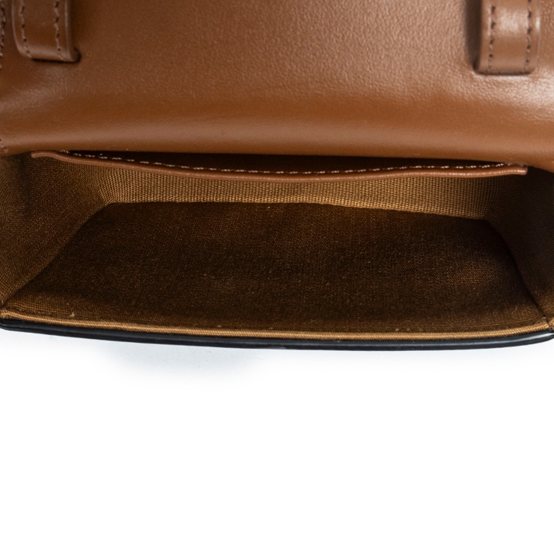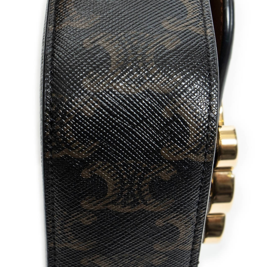 A vintage Celine tan coated canvas Mini Triomphe bag with a certificate of authenticity, Approximately 10cm height, 12cm width.