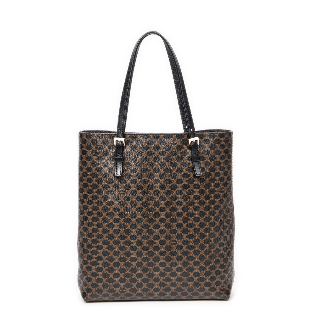 A vintage Celine black/brown coated canvas Shopping Tote bag with a certificate of authenticity, Approximately 29cm height, 25cm width.