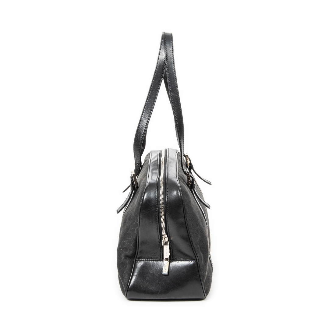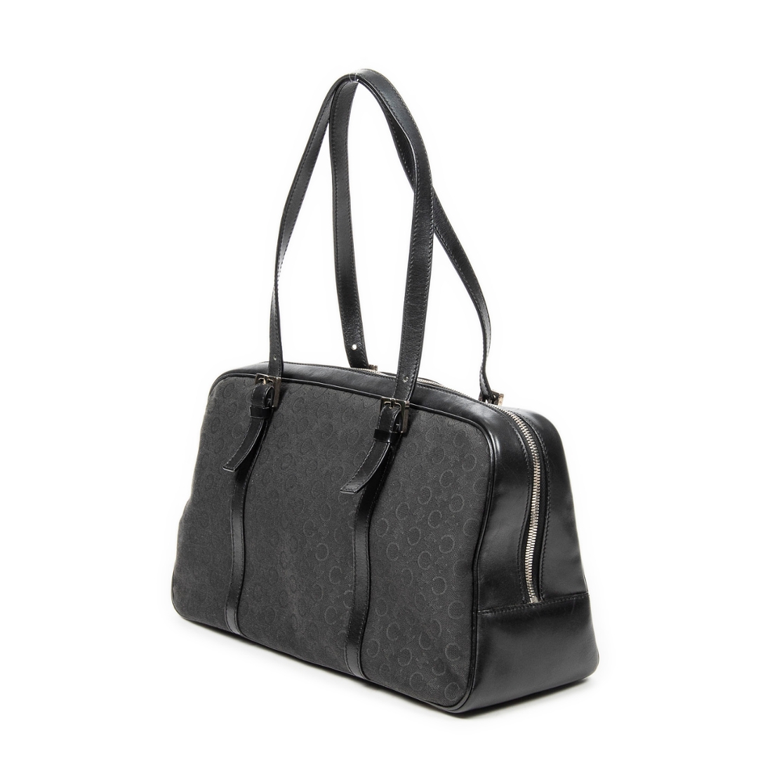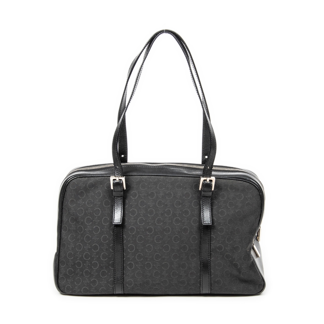 A vintage Celine black canvas Vintage Boston Bag with a certificate of authenticity, Approximately 21cm height, 37cm width.