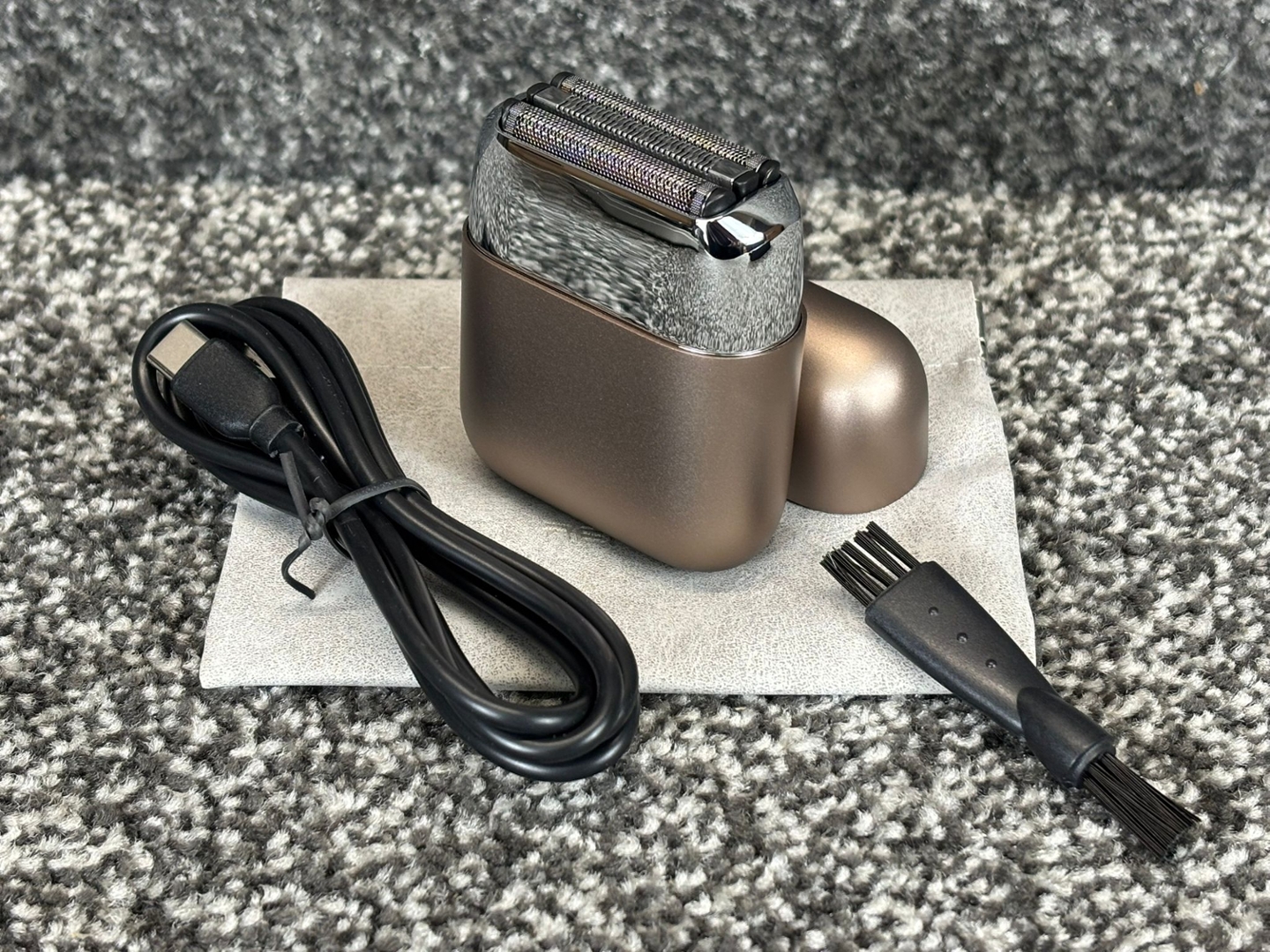 A brand new Champagne Gold All-Metal Mini Electric Shaver with High-Speed Motor & Washable Design.