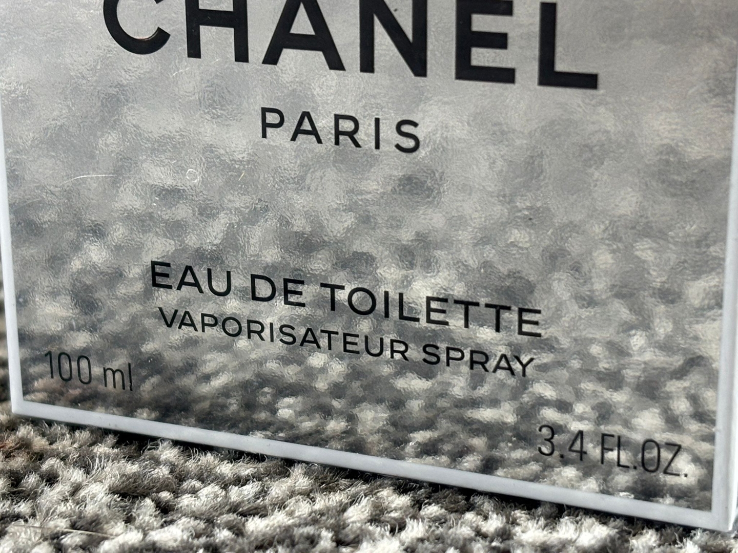 A 100ml bottle of Chanel Platinum Eau de Toilette, presented in