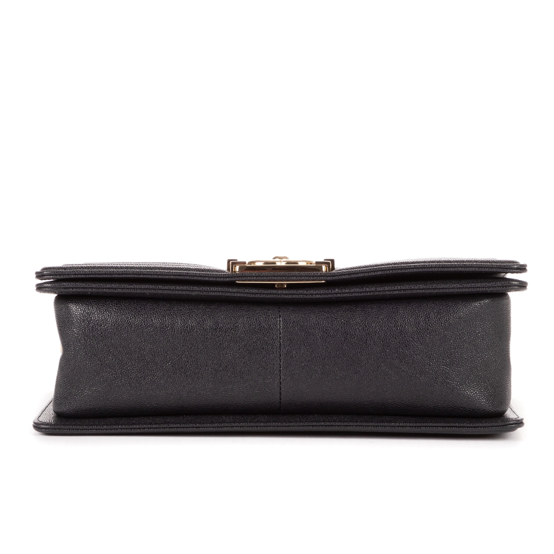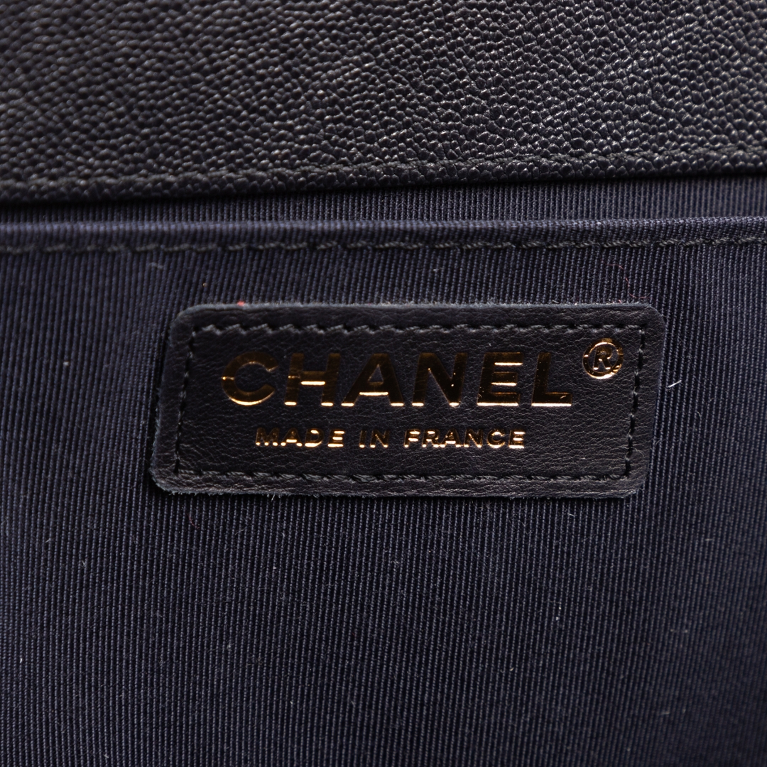 A vintage deep blue Chanel Boy bag with a certificate of authenticity, Approximately 15cm height, 25cm width.