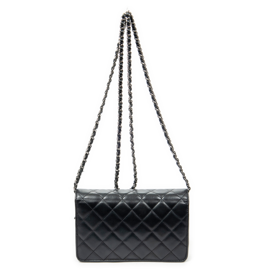 A vintage Chanel black calf leather Cambon Ligne Wallet On Chain bag with a certificate of authenticity, Approximately 12cm height, 19cm width.