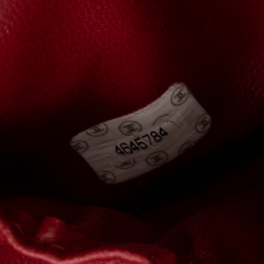 A vintage Chanel red calf leather CC Short Vanity Case bag with a certificate of authenticity, Approximately 10cm height, 19cm width.