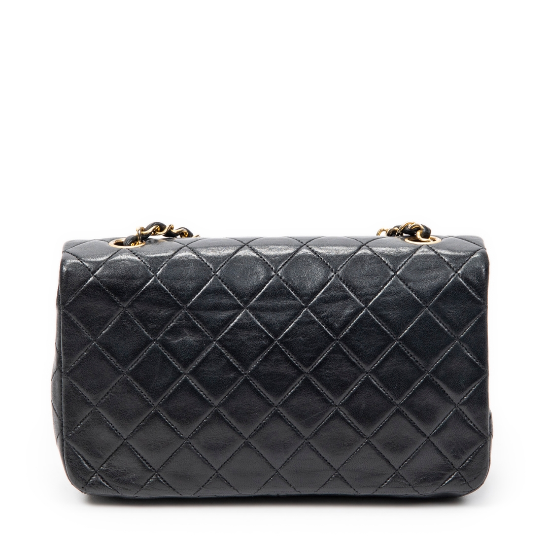 A vintage Chanel black quilted lambskin leather CC Turn Lock Mademoiselle Full Flap bag, representing one of the most iconic and enduring designs from the house. Crafted from supple lambskin, the classic diamond quilting enhances both texture and structure, while the gold-tone CC turn-lock closure adds a refined focal point. The leather-interwoven chain strap completes the signature Chanel aesthetic.