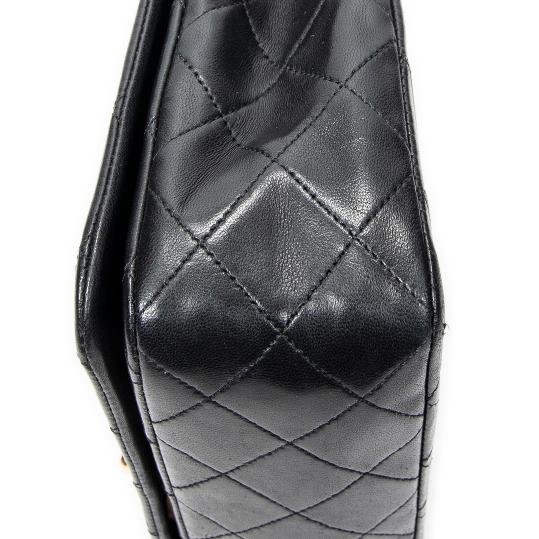 A vintage Chanel black quilted lambskin leather CC Turn Lock Mademoiselle Full Flap bag with a certificate of authenticity, Approximately 14cm height, 23cm width.