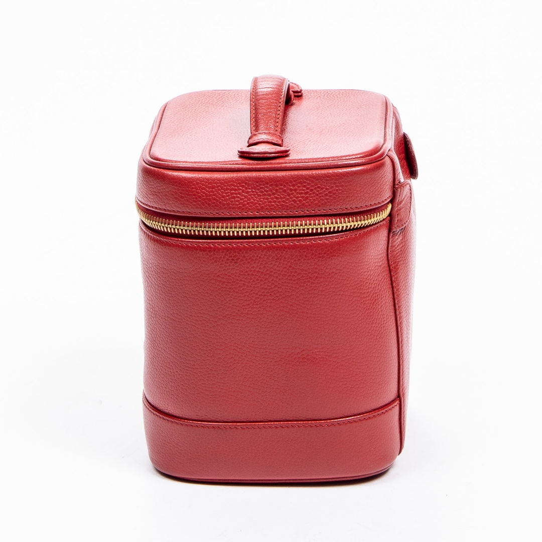 A vintage Chanel red calf leather CC Vanity Case bag with a certificate of authenticity, Approximately 16cm height, 15cm width.