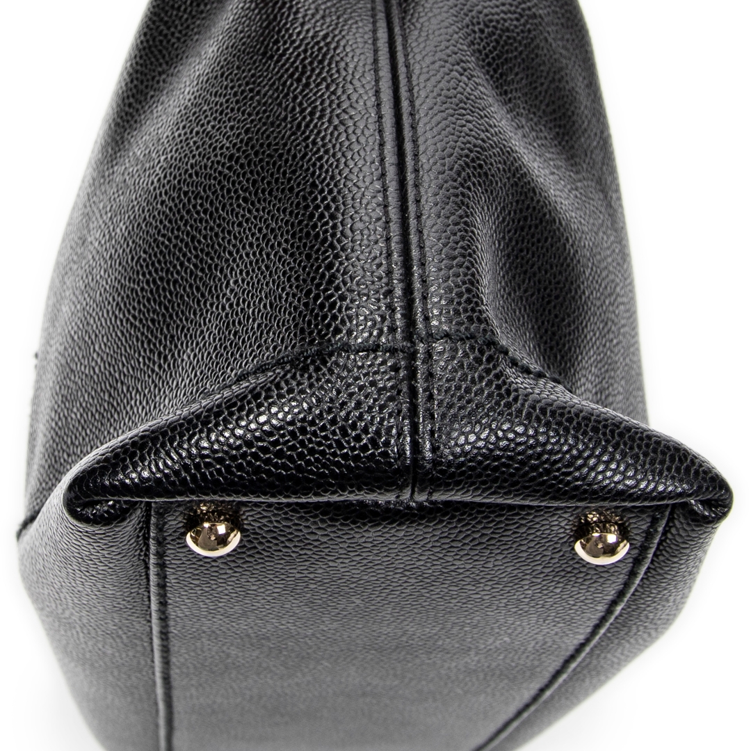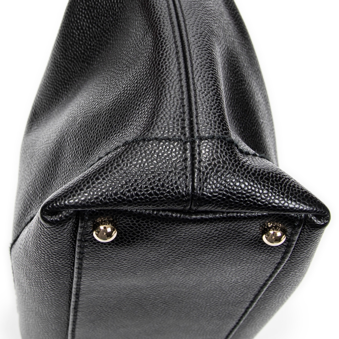 A vintage Chanel black calf leather CC Wood Chain Hobo bag with a certificate of authenticity, Approximately 20cm height, 33cm width.