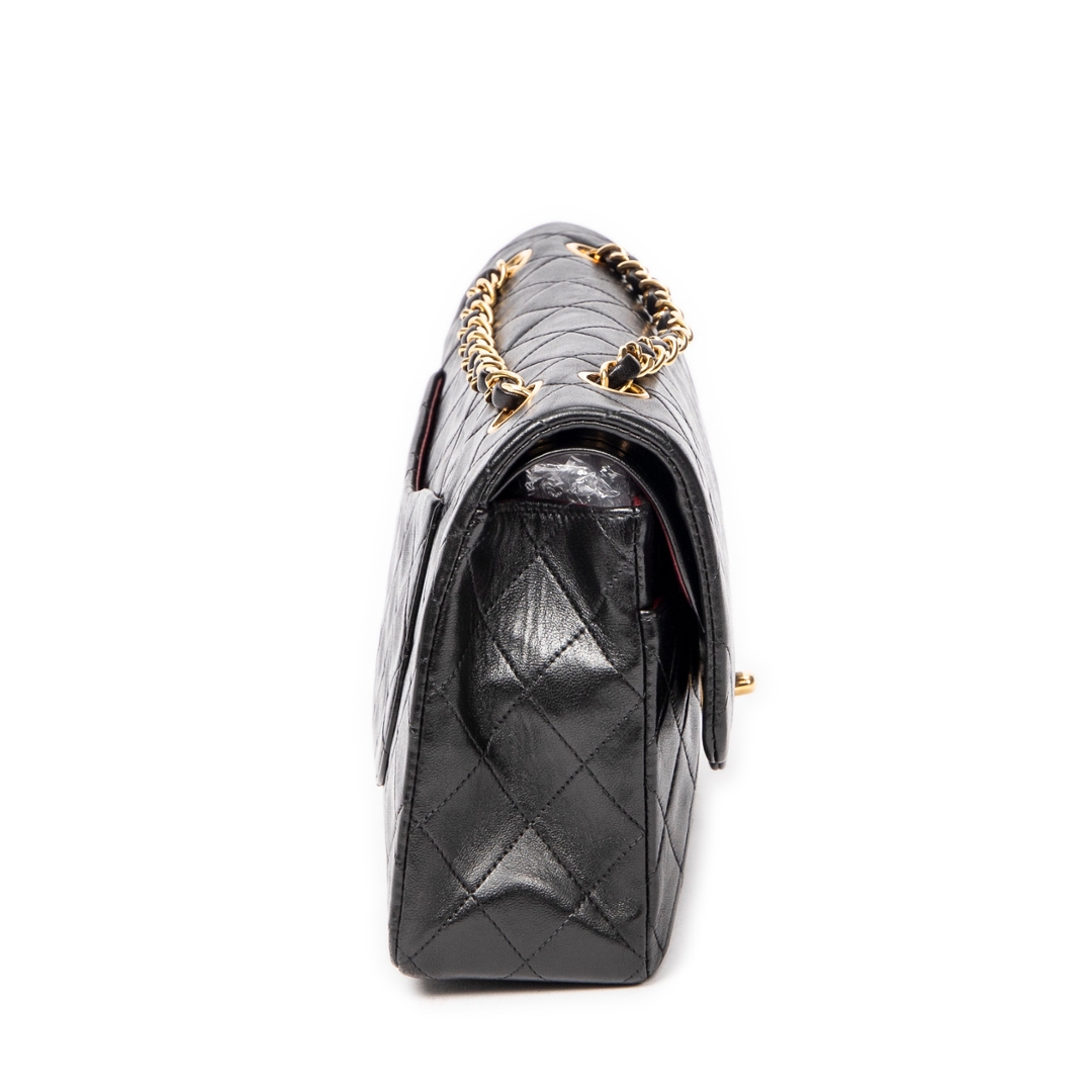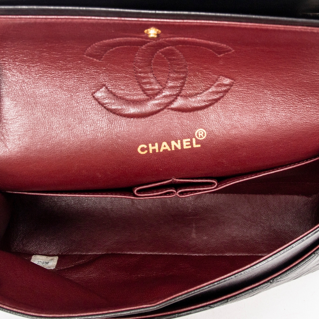 A vintage Chanel black quilted lambskin leather Classic Double Flap bag with a certificate of authenticity, Approximately 16cm height, 26cm width.