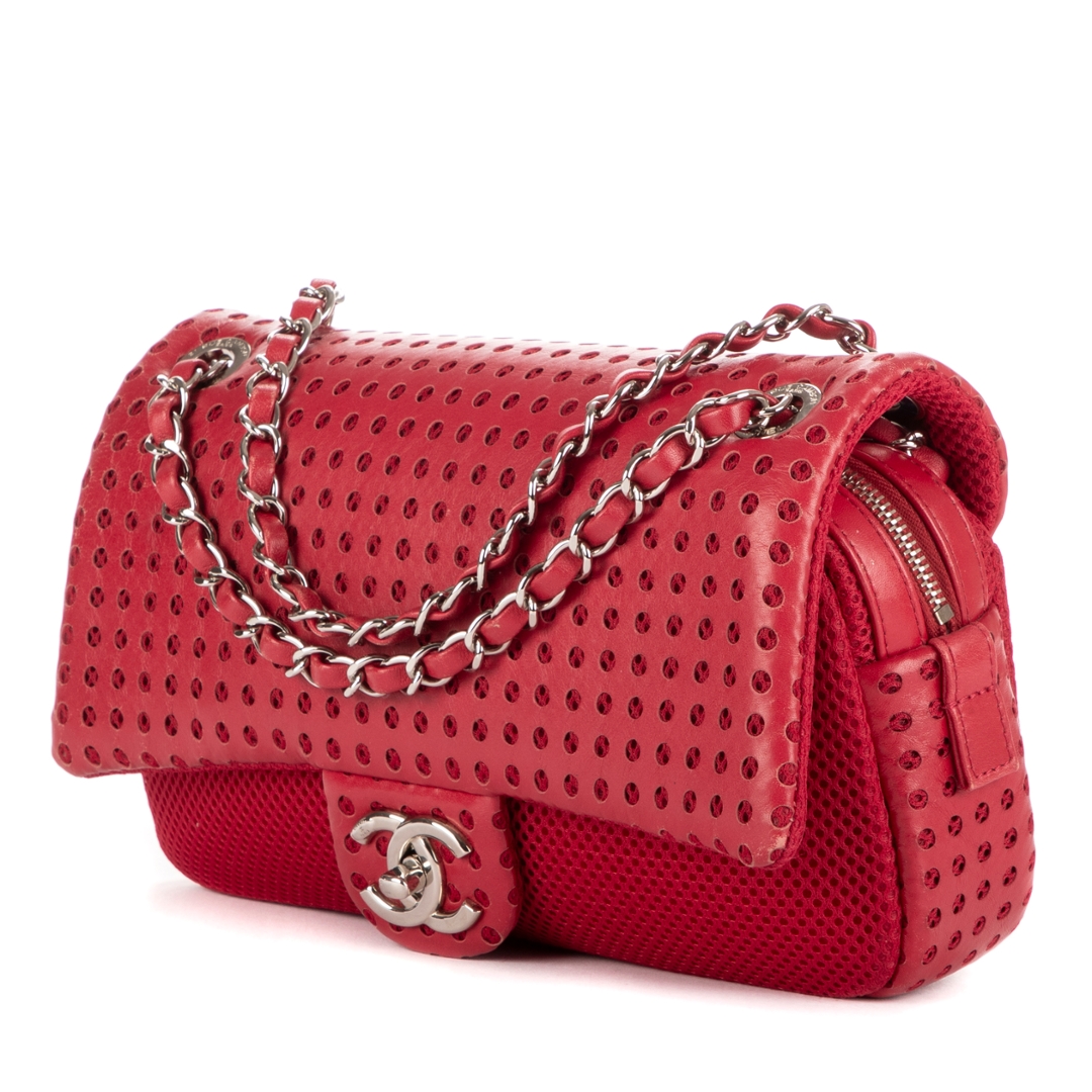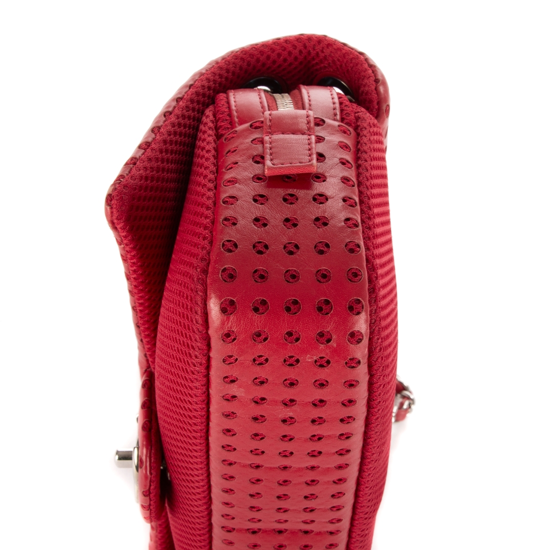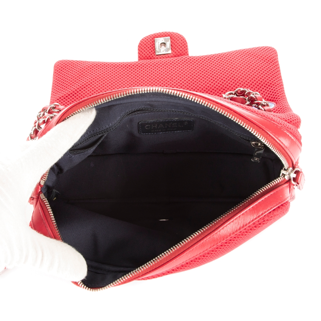 A vintage Chanel red calf leather Easy Flap bag with a certificate of authenticity, Approximately 16cm height, 25cm width.