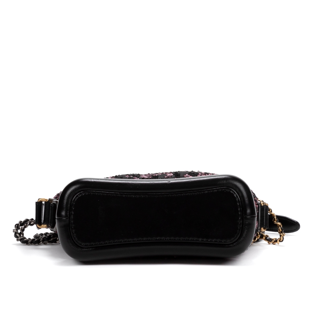 A vintage Chanel black calfskin leather & sequin canvas Gabrielle Sequins bag with a certificate of authenticity, Approximately 15cm height, 19cm width.