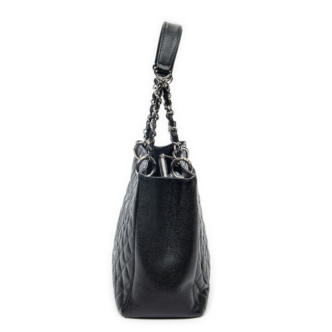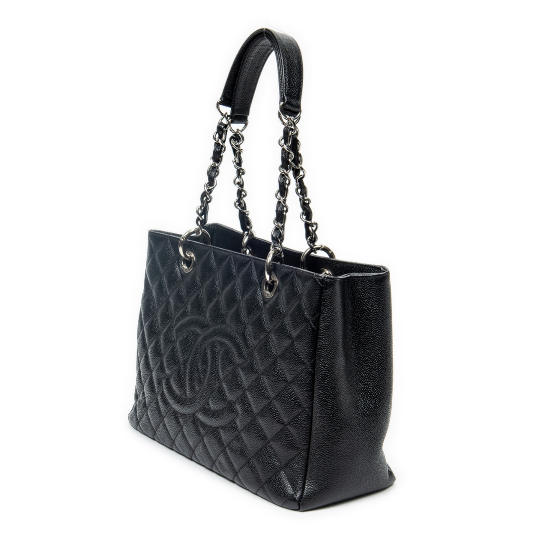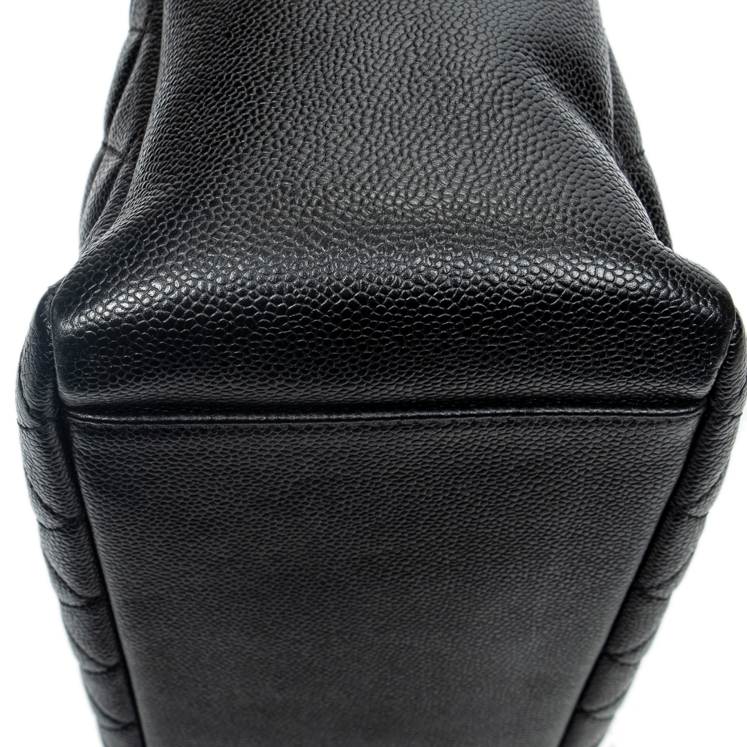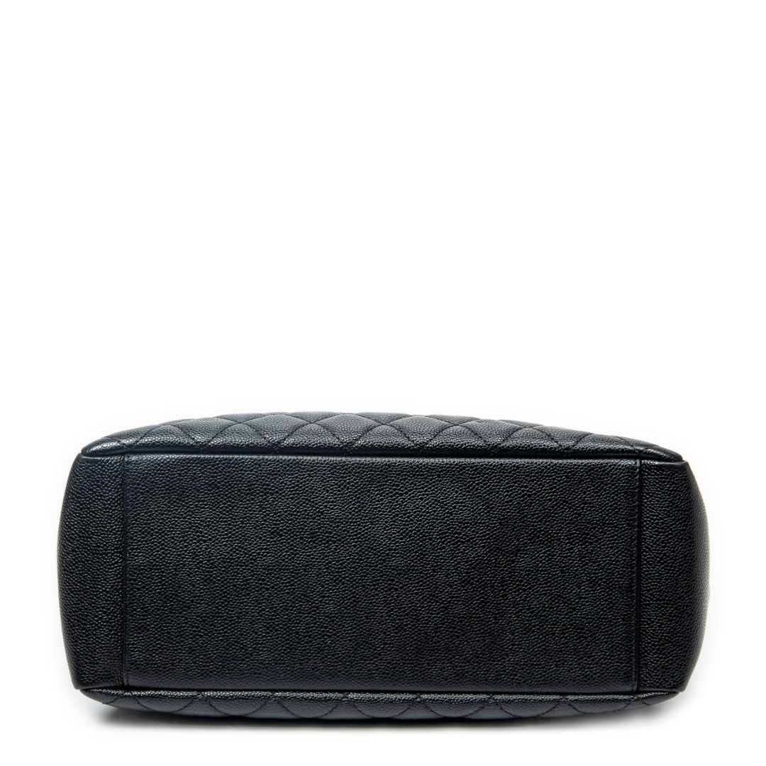 A vintage Chanel black quilted calf leather Grand Shopping Tote bag with a certificate of authenticity, Approximately 23cm height, 34cm width.