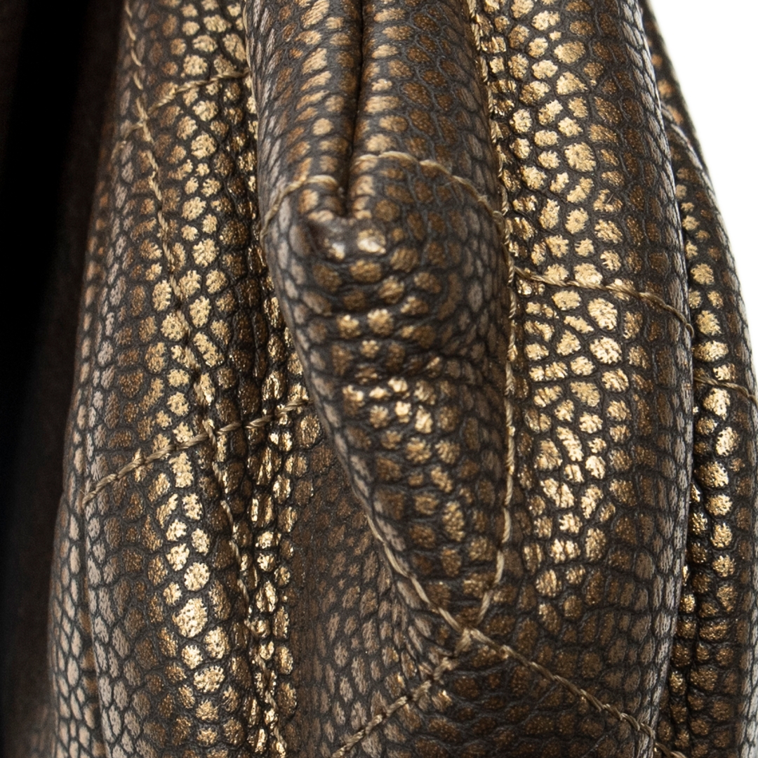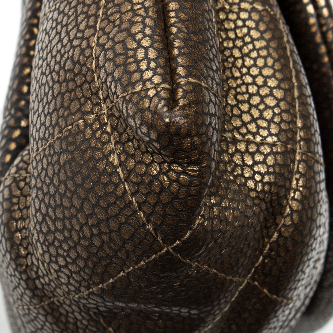 A vintage Chanel bronze calf leather Half Moon Wallet on Chain bag, offering a distinctive and elegant take on the house’s classic silhouettes. Crafted from finely grained calf leather, the softly curved half moon shape is enhanced by a rich metallic bronze finish, while the embossed CC logo to the front provides a subtle yet instantly recognisable Chanel signature.