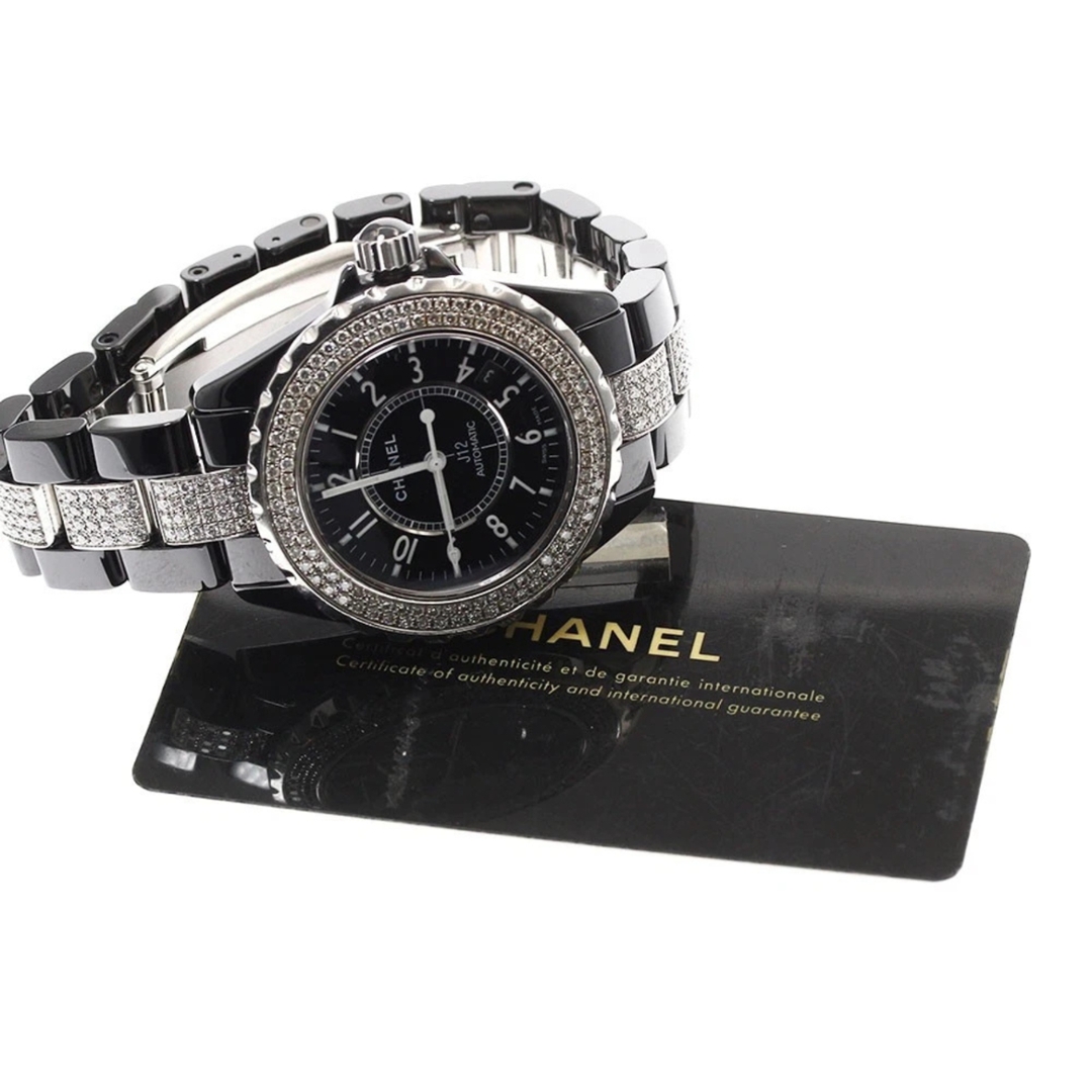 The Chanel J12 H1339 remains a standout in the J12 range, particularly for its factory diamond configuration. Early J12 models with full diamond embellishment continue to attract strong interest as the line grows in prestige. Supplied with original Chanel paperwork, box, and certification, along with a 12-month warranty, this 2004 example in immaculate condition represents a unique and highly desirable collector's piece.