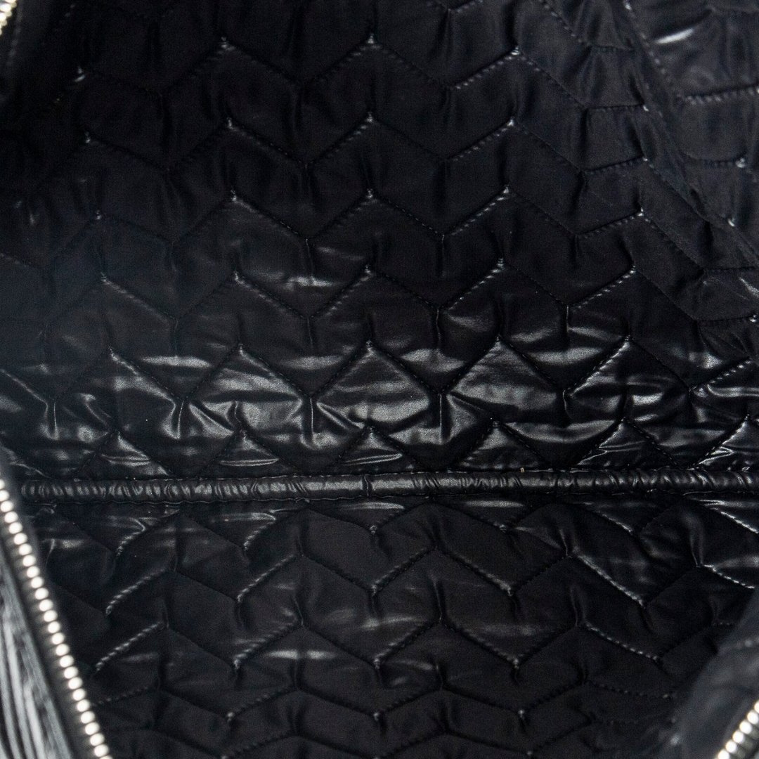 A vintage Chanel black chevron calf leather Large Chevron O-Case Zip bag, offering a refined and contemporary take on a classic Chanel accessory. Crafted from durable calf leather, the distinctive chevron quilting creates a dynamic textured finish, while the subtle CC logo detail adds a discreet yet instantly recognisable signature.
