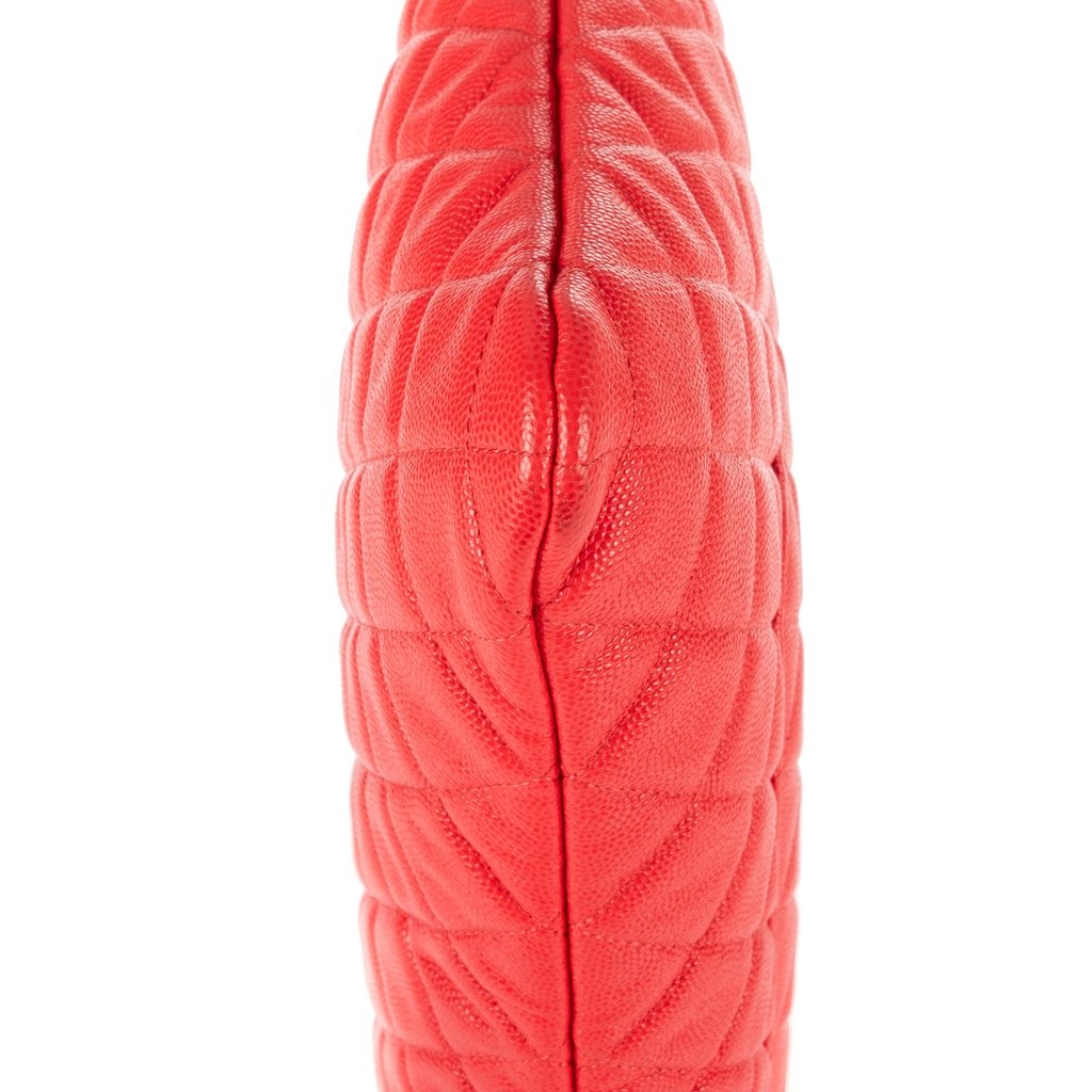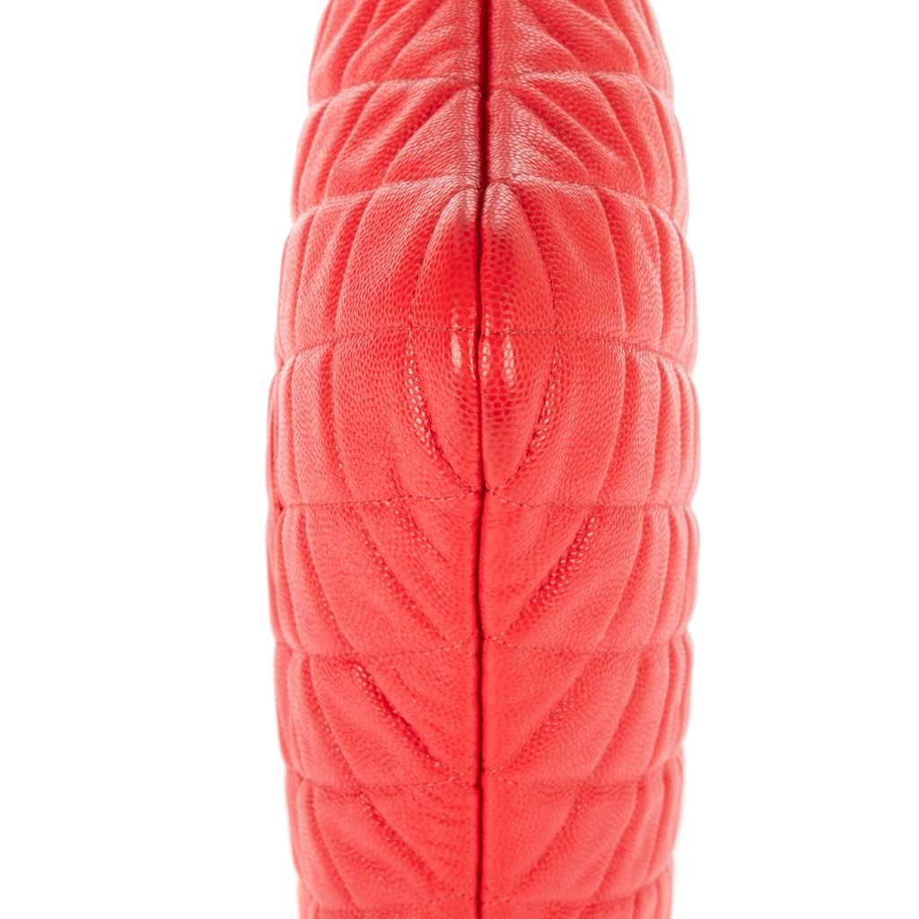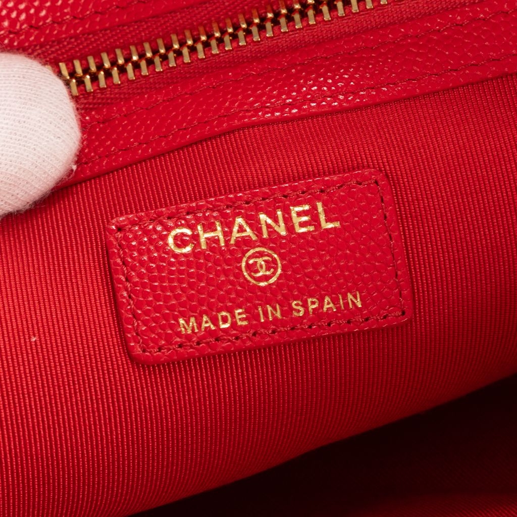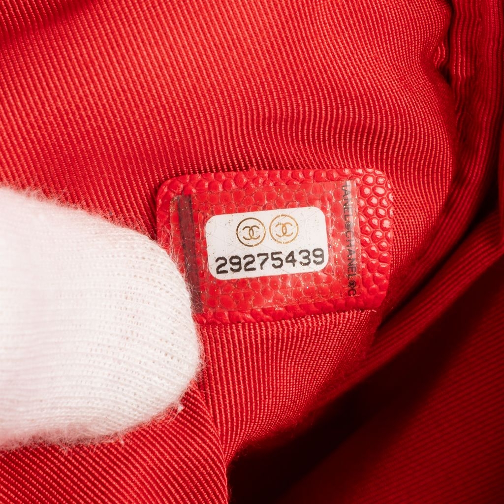 A vintage Chanel red calf leather Logo Zip Clutch bag with a certificate of authenticity, Approximately 23cm height, 34cm width.