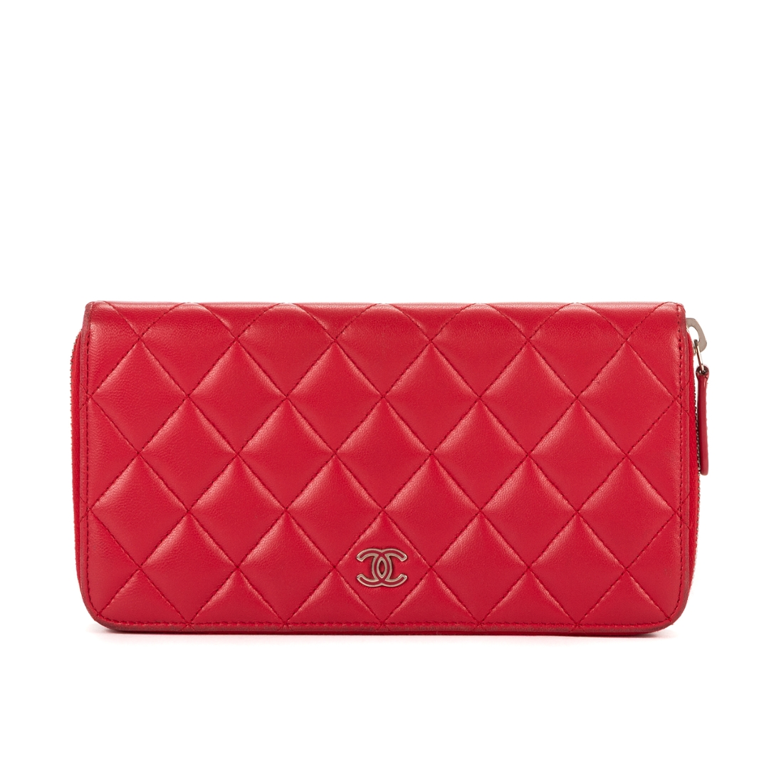 A vintage Chanel fuchsia calf leather Long Wallet with a certificate of authenticity, Approximately 10cm height, 19cm width.