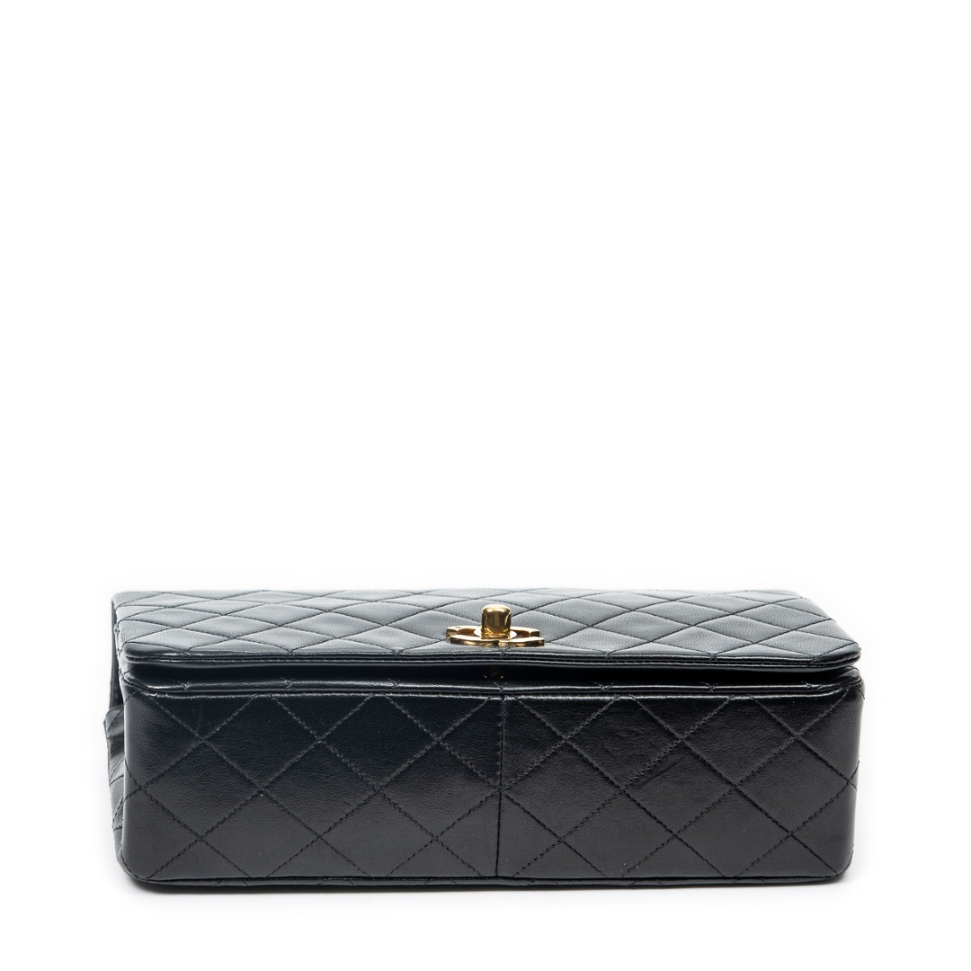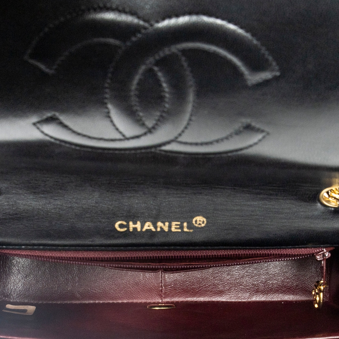 A vintage Chanel black quilted lambskin leather Mademoiselle Full Flap bag, an elegant and timeless piece that reflects the house’s iconic design heritage. Crafted from supple lambskin leather, the signature diamond quilting enhances the structured silhouette, while the classic CC turn-lock fastening in gold-tone hardware delivers an instantly recognisable and refined focal point.