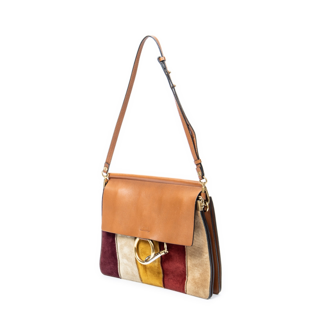 - > Chloe Medium Faye Shoulder Striped Patchwork (ABB6494COO).