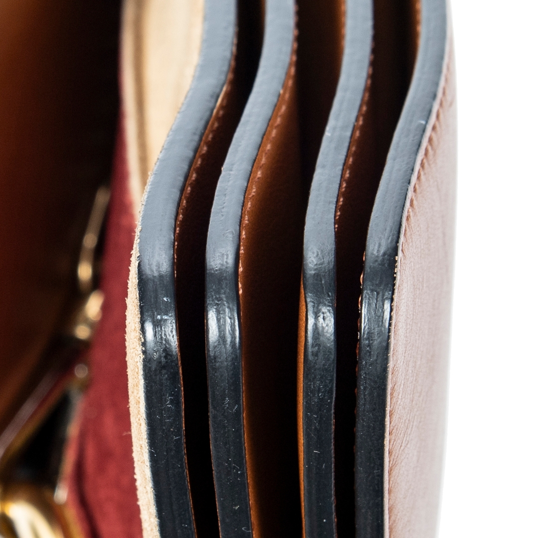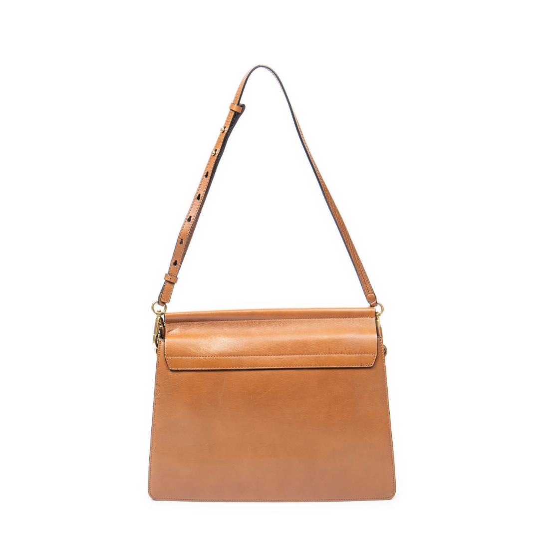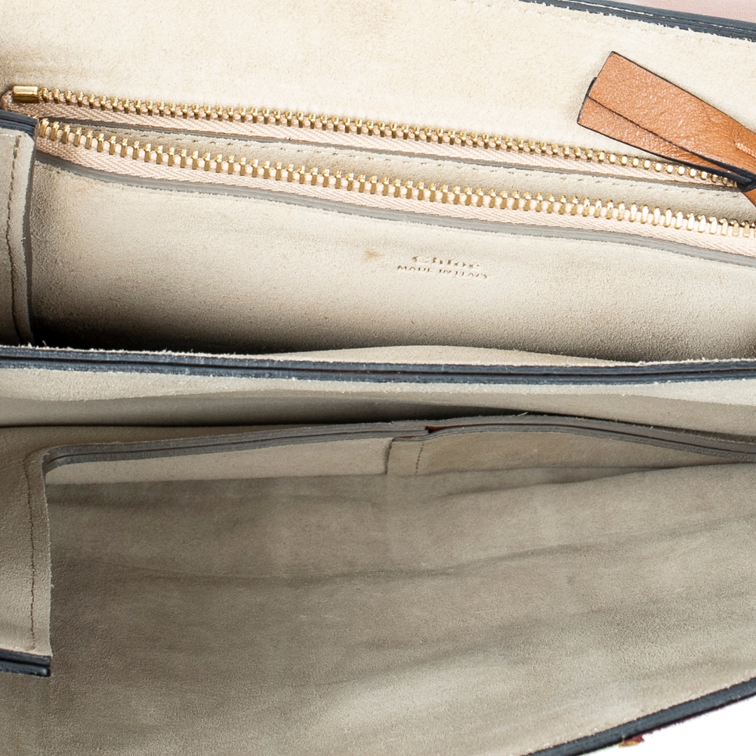 A vintage Chloe tan calf leather Medium Faye Shoulder Striped Patchwork bag with a certificate of authenticity, Approximately 24cm height, 31cm width.