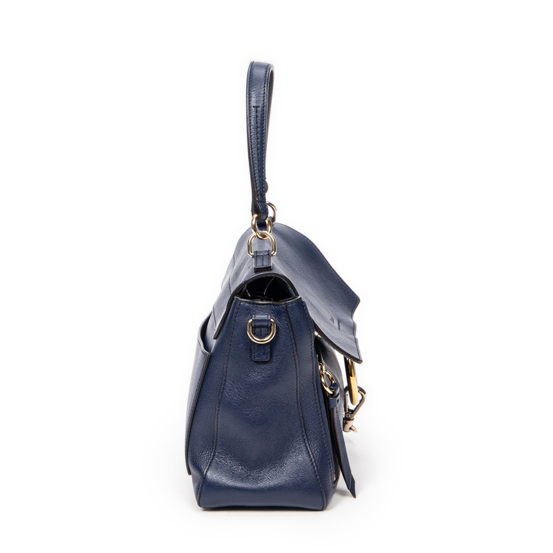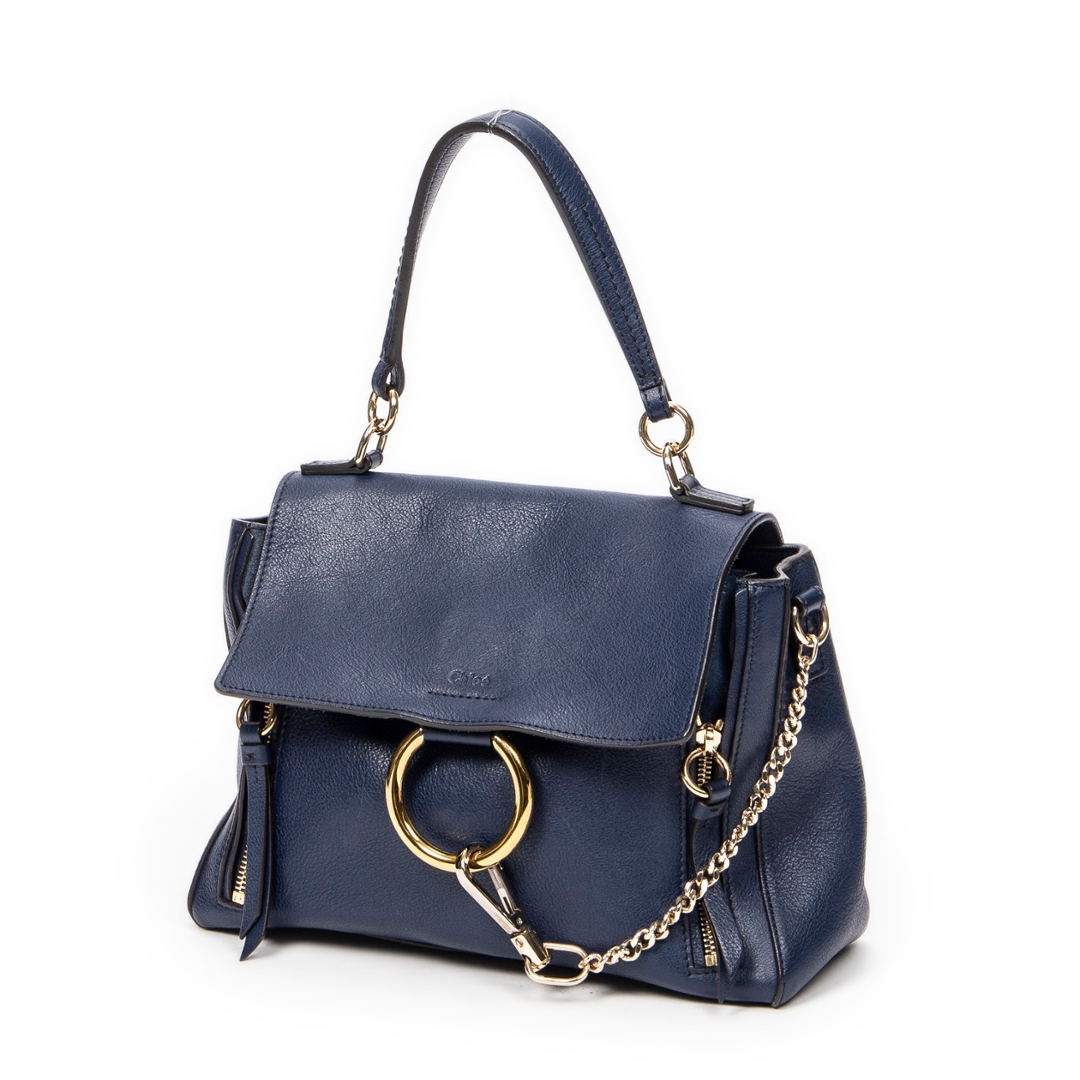 A vintage Chloe navy calf leather Small Faye Day bag with a certificate of authenticity, Approximately 18cm height, 26cm width.