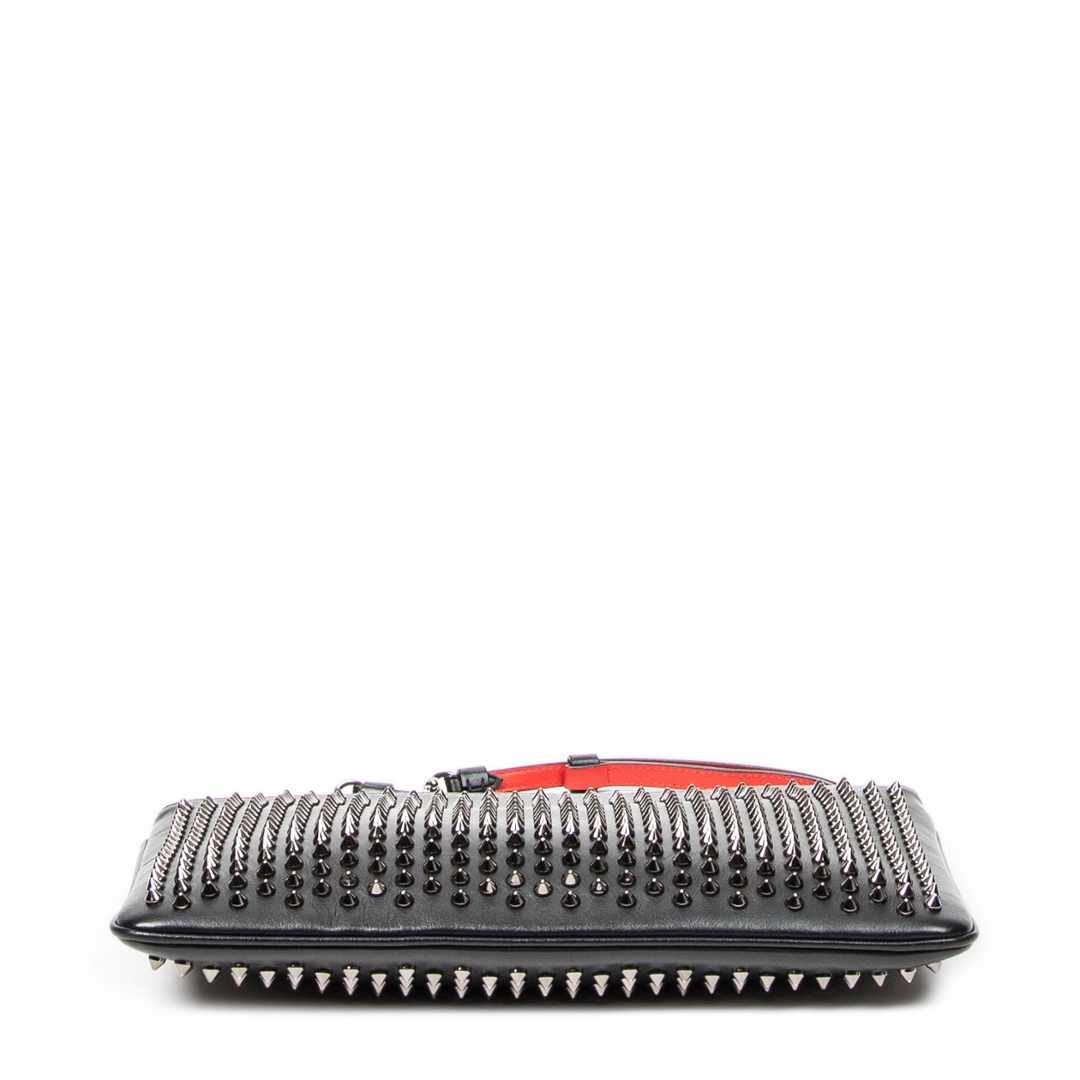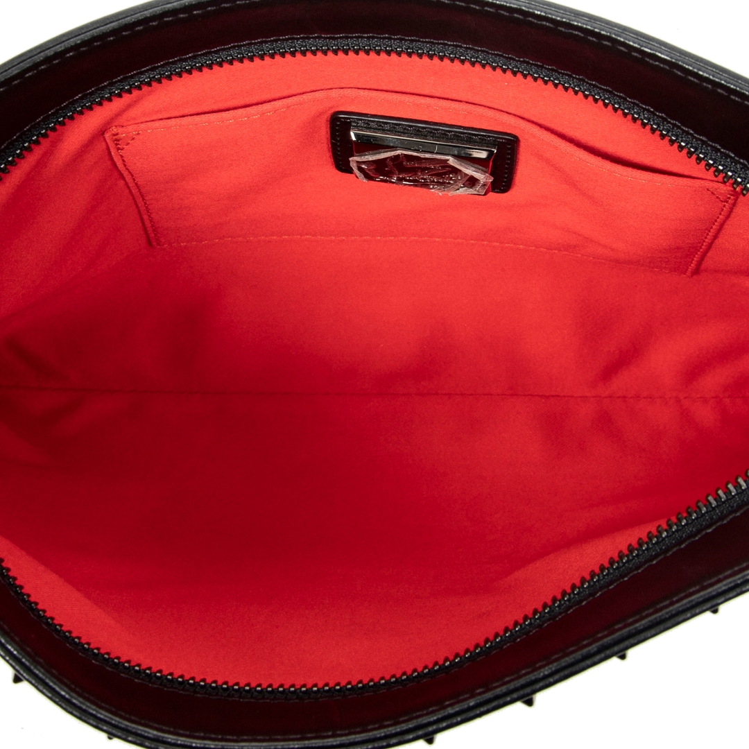 A vintage Christian Louboutin black calf leather Loubiposh Spiked Clutch bag with a certificate of authenticity, Approximately 19cm height, 31cm width.