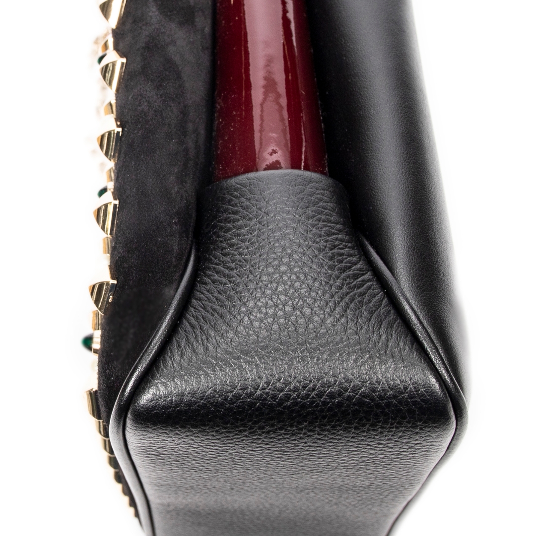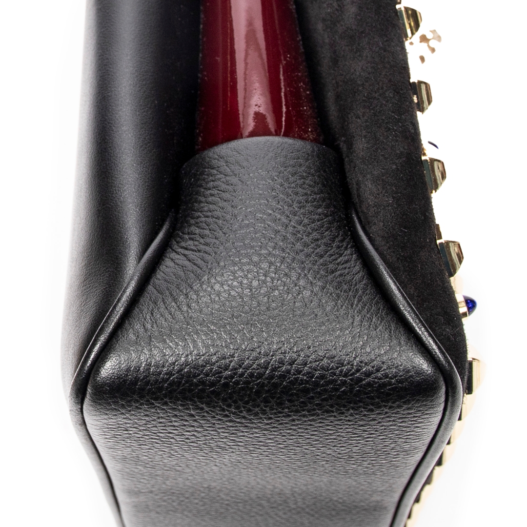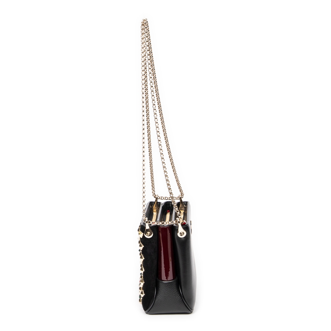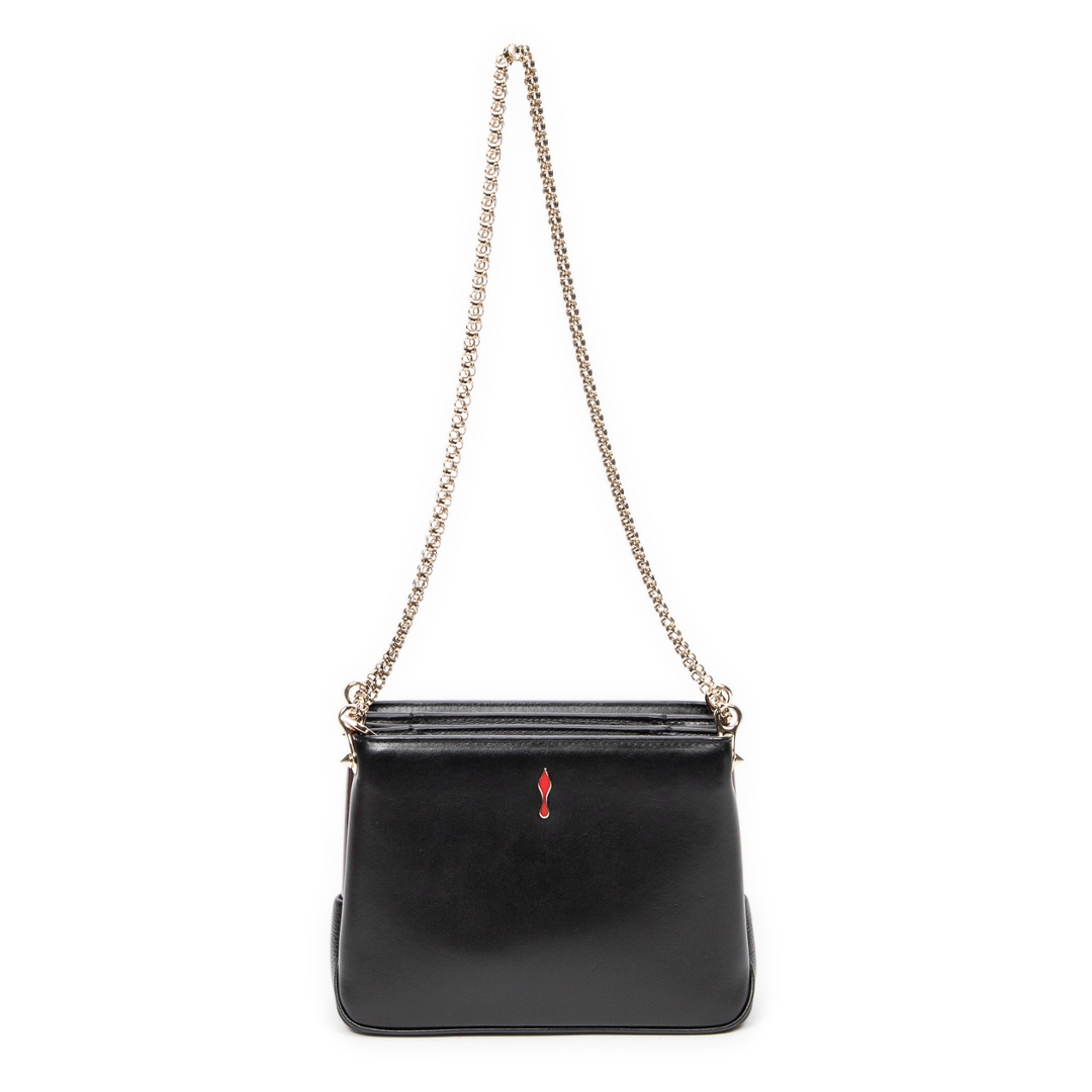 A vintage Christian Louboutin black calf leather Small Pearl Studded Triloubi Chain bag with a certificate of authenticity, Approximately 15cm height, 20cm width.