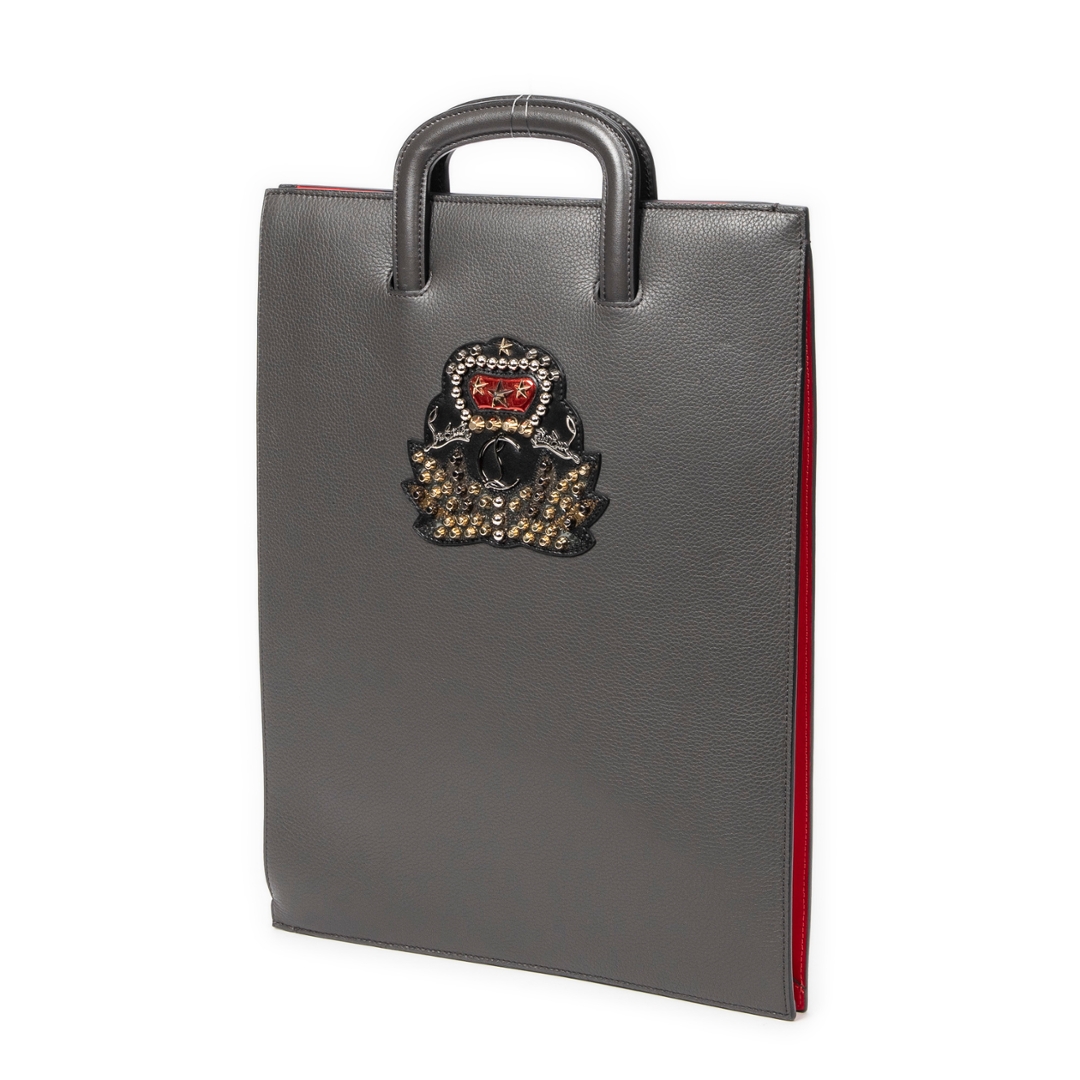 A vintage Christian Louboutin grey calf leather Trick Track Portfolio Bag with a certificate of authenticity, Approximately 40cm height, 31cm width.