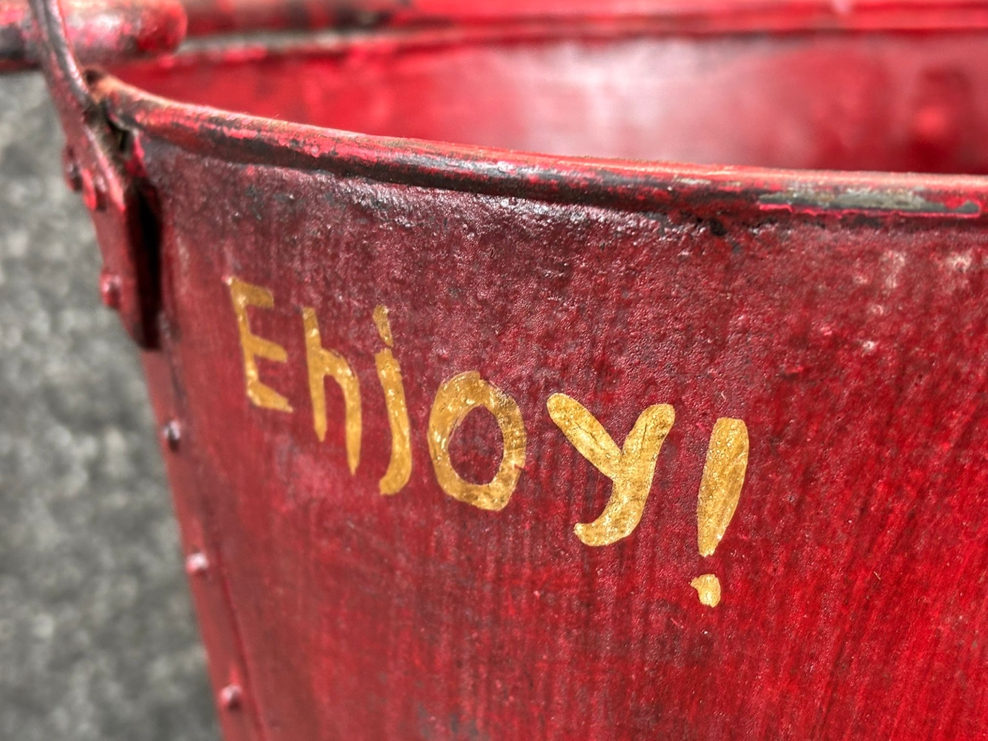 A hand-painted red bucket celebrates the timeless charm of Coca-Cola’s classic design. Featuring the iconic logo in bold golden lettering, it perfectly captures the nostalgic spirit of one of the world’s most beloved brands. The hand-finished surface gives it an authentic, vintage appeal, making it a standout decorative piece with character and warmth.