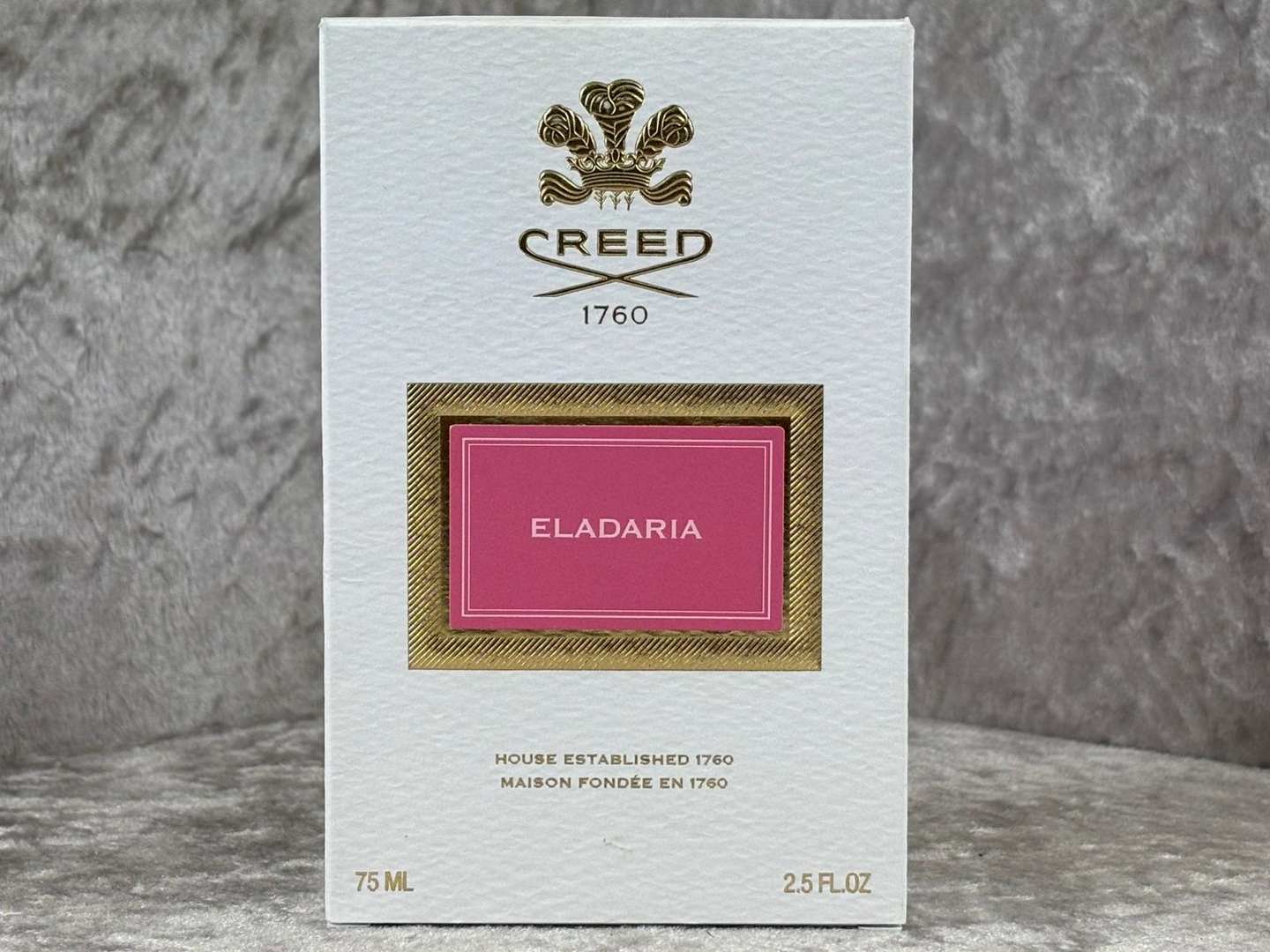 A 75ml bottle of Eladaria Eau De Parfum by Creed, presented in its official presentation box. This refined creation reflects the house’s heritage of craftsmanship and understated luxury, offering a fragrance that feels luminous, elegant and beautifully composed from the very first spray.