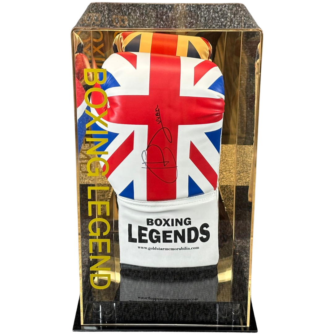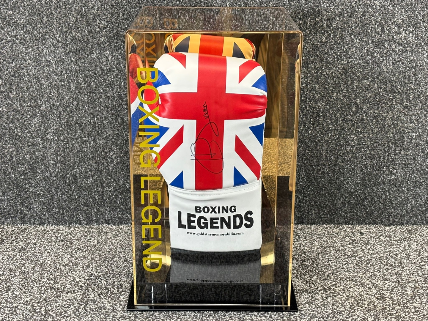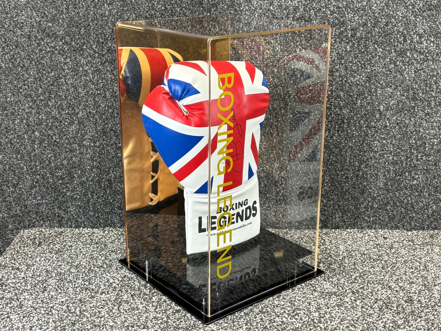 Presented in a smart display case, this item measures approximately 13 inches in height and 8 inches in width, making it ideal for display in a home, office, or collection setting. A superb opportunity to acquire a standout piece connected to one of Britain’s most recognisable heavyweight fighters.