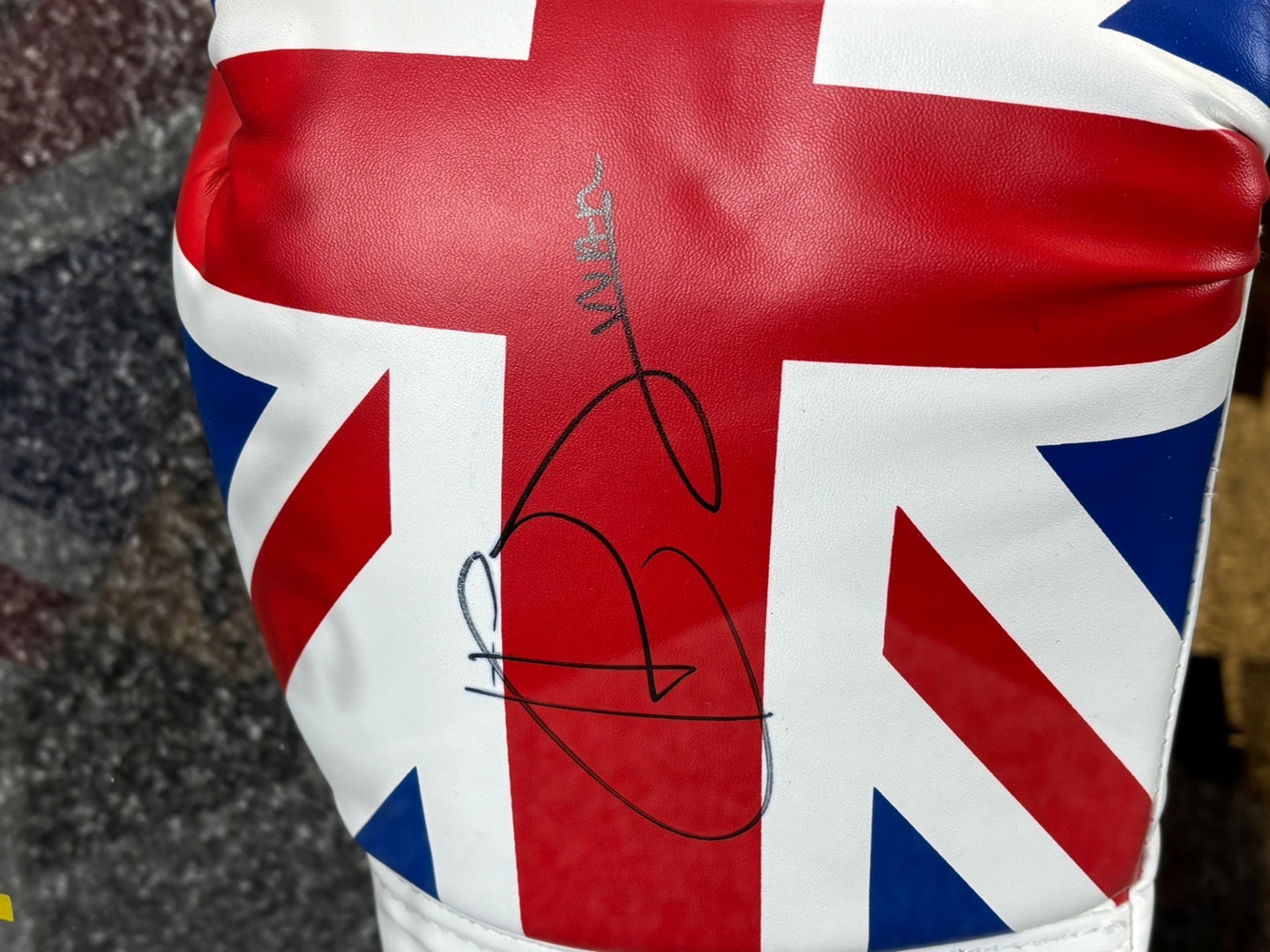 The glove itself features a bold Union Jack design, symbolising British pride and perfectly complementing Chisora’s reputation inside the ring. His clear autograph is prominently displayed across the surface, adding authenticity and visual appeal. The piece is fully authenticated, offering confidence and assurance for collectors seeking genuine signed memorabilia tied to a well-recognised name in boxing.