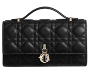 A Dior black Cannage quilted leather Lady Dior mini bag, embodying the house’s most iconic design language in a compact, refined format. The signature Cannage stitching creates a structured, geometric texture across the supple leather, while gold-tone hardware enhances the contrast with a luxurious finish. The instantly recognisable Dior charm set adds movement and character, delivering a distinctive and highly sought-after aesthetic.