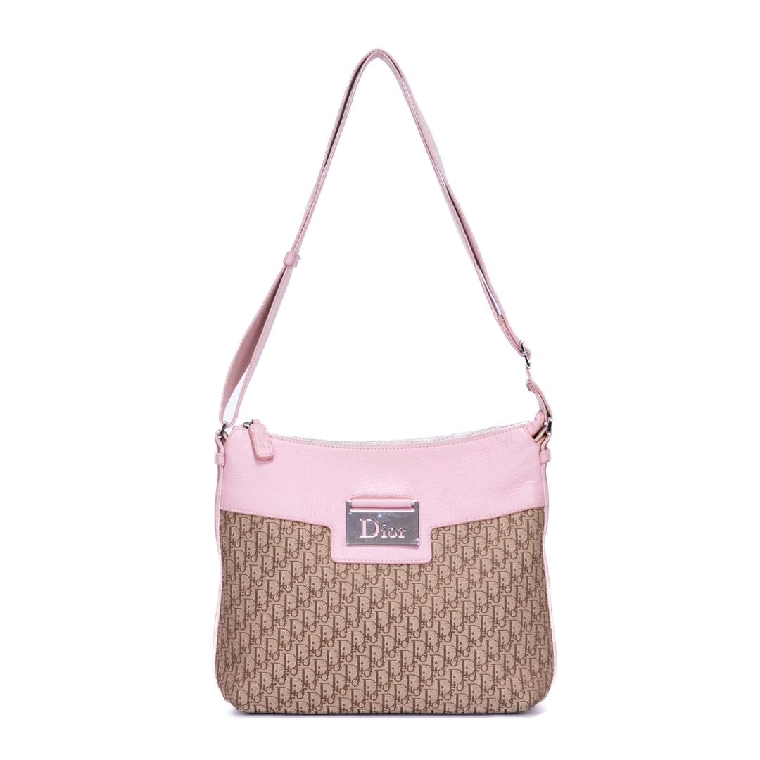 A vintage Dior beige/pink canvas Diorissimo Street Chic Oblique bag with a certificate of authenticity. Approximately 22cm height, 25cm width.
