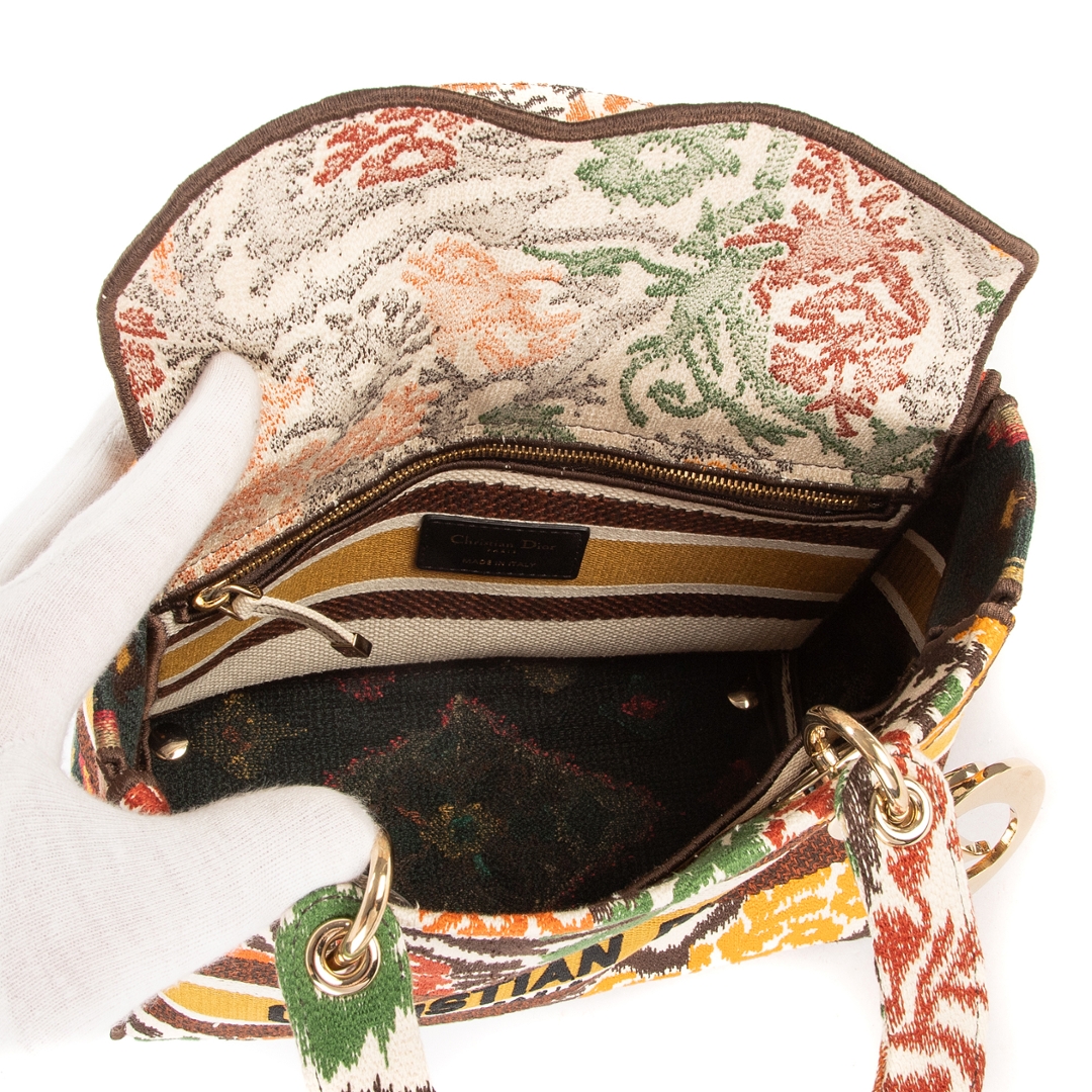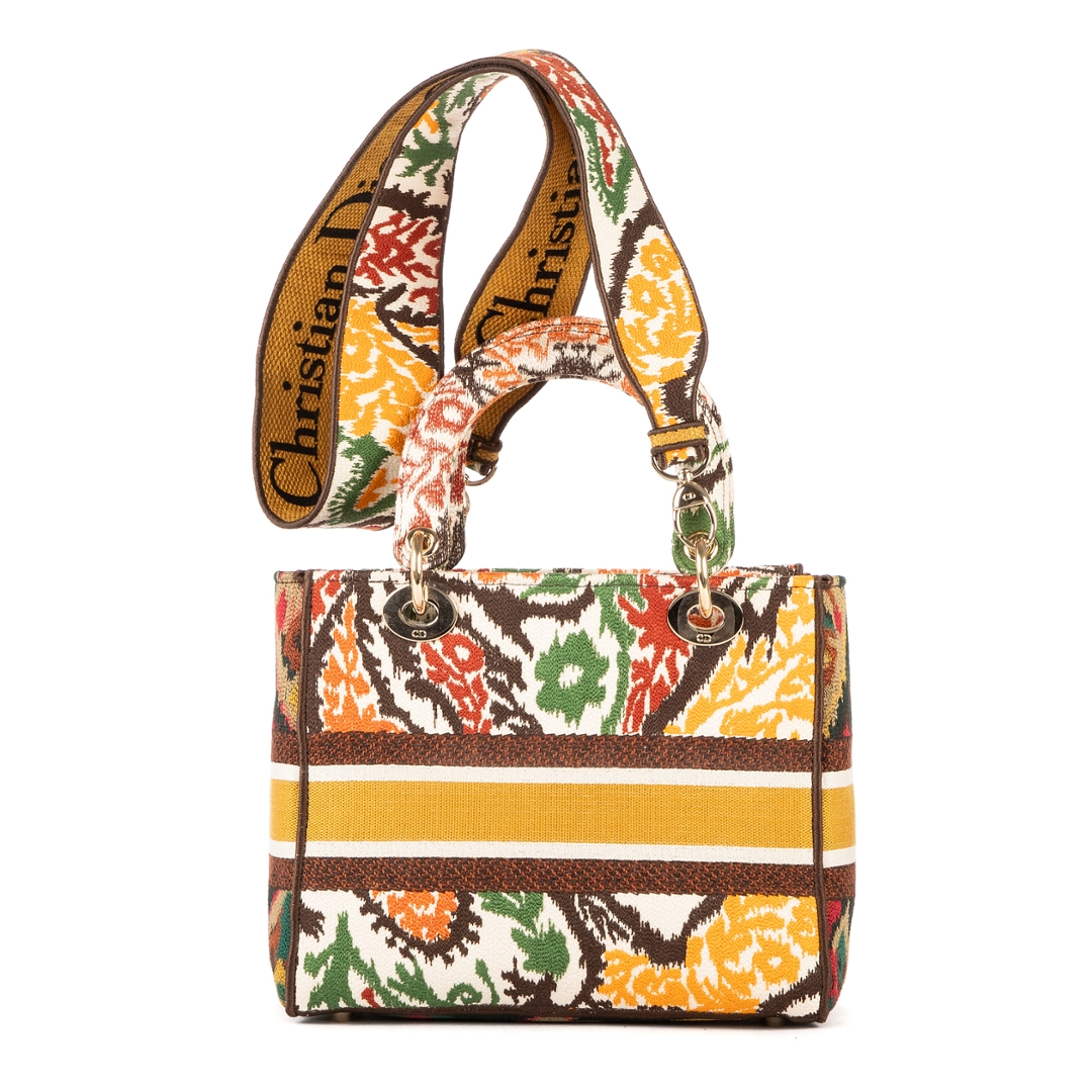 A vintage multicoloured canvas Dior Lady Dior Lite bag with a certificate of authenticity, Approximately 21cm height, 24cm width.