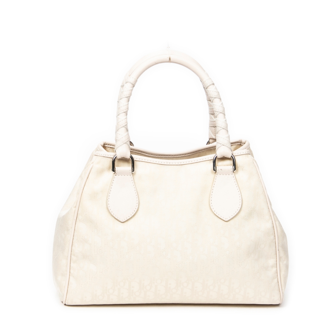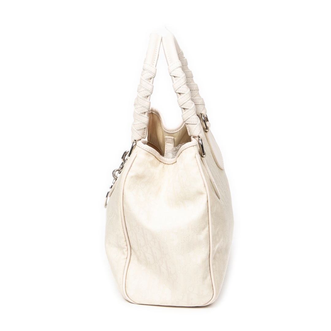 A vintage Dior ivory canvas Lovely Trotter Tote bag with a certificate of authenticity. Approximately 20cm height, 27cm width.