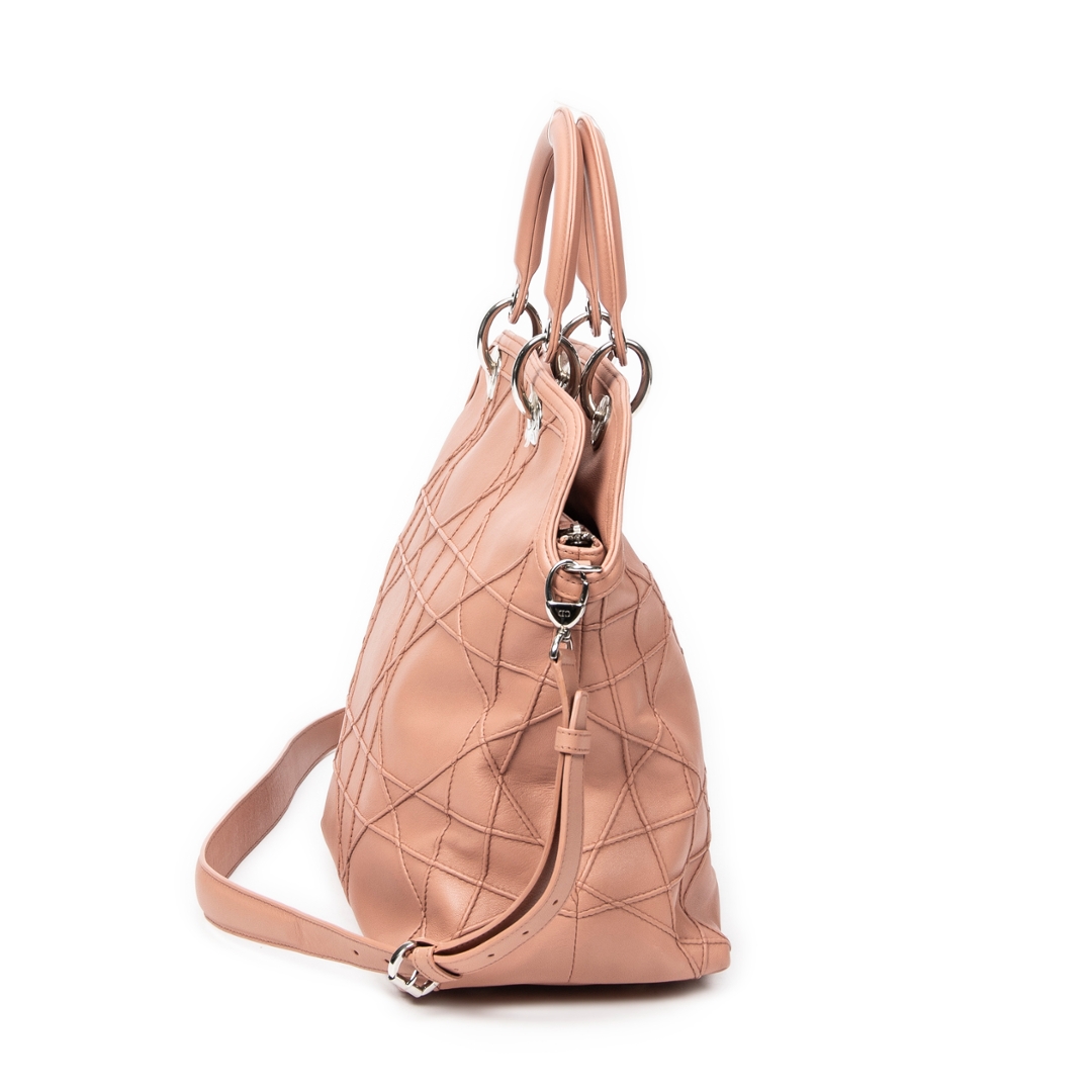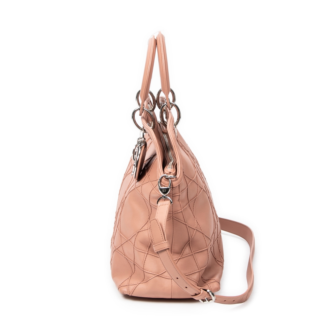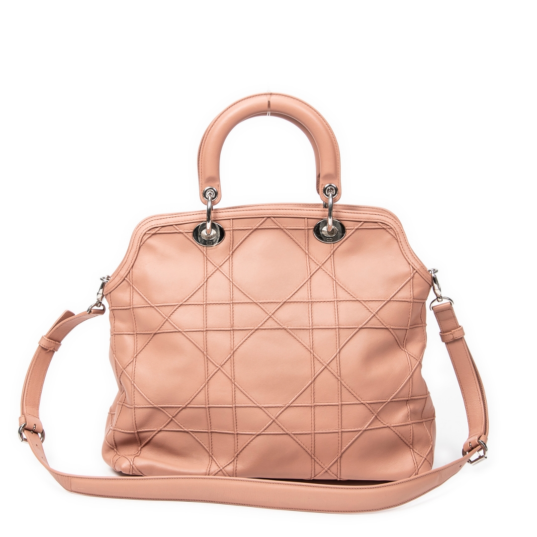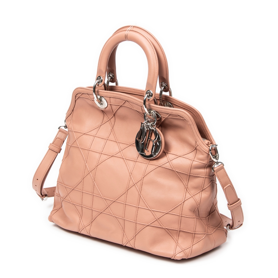 A vintage Dior light pink calf leather Medium Granville Tote bag with a certificate of authenticity. Approximately 31cm height, 32cm width.