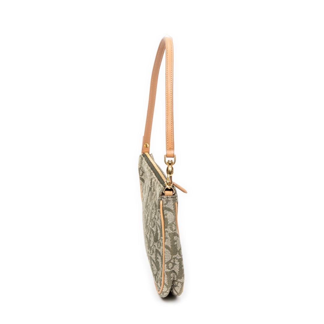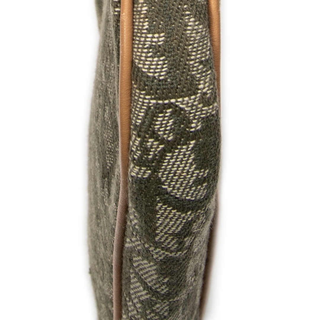 A vintage Dior green/beige canvas Mini Saddle Pochette bag with a certificate of authenticity. Approximately 16cm height, 20cm width.