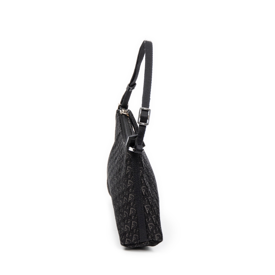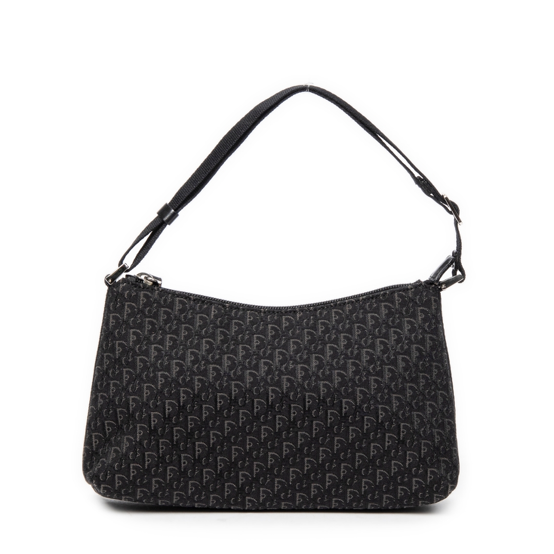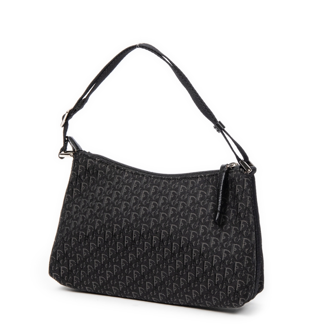 A vintage Dior black canvas Mini Trotter Pochette bag with a certificate of authenticity. Approximately 15cm height, 23cm width.
