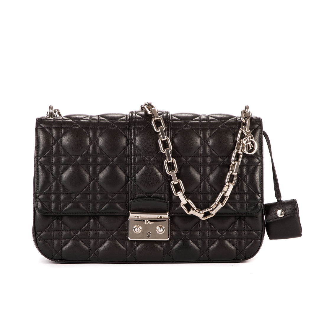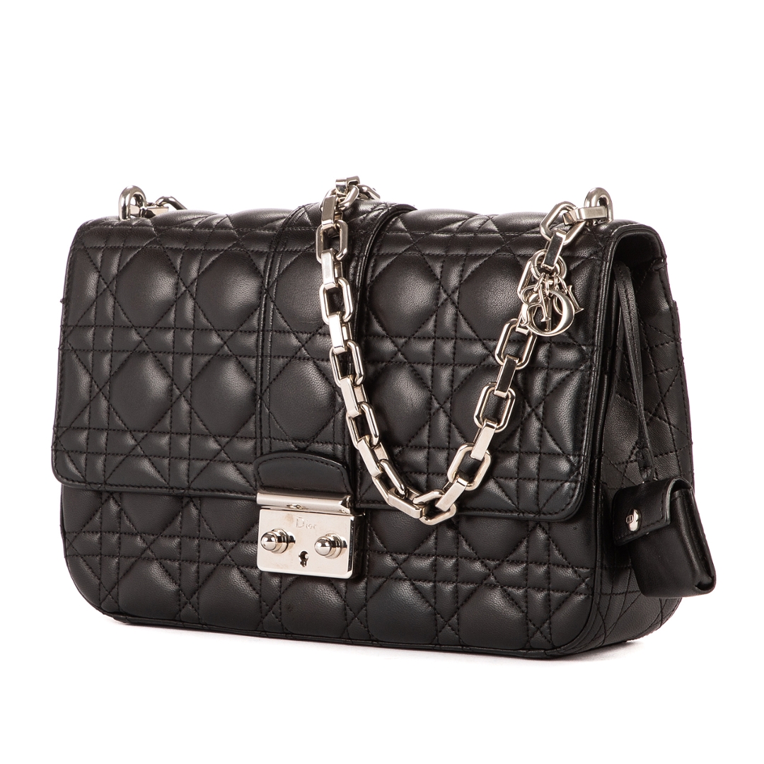 A vintage black calf leather Dior Miss Dior bag with a certificate of authenticity, Approximately 17.5cm height, 26cm width.