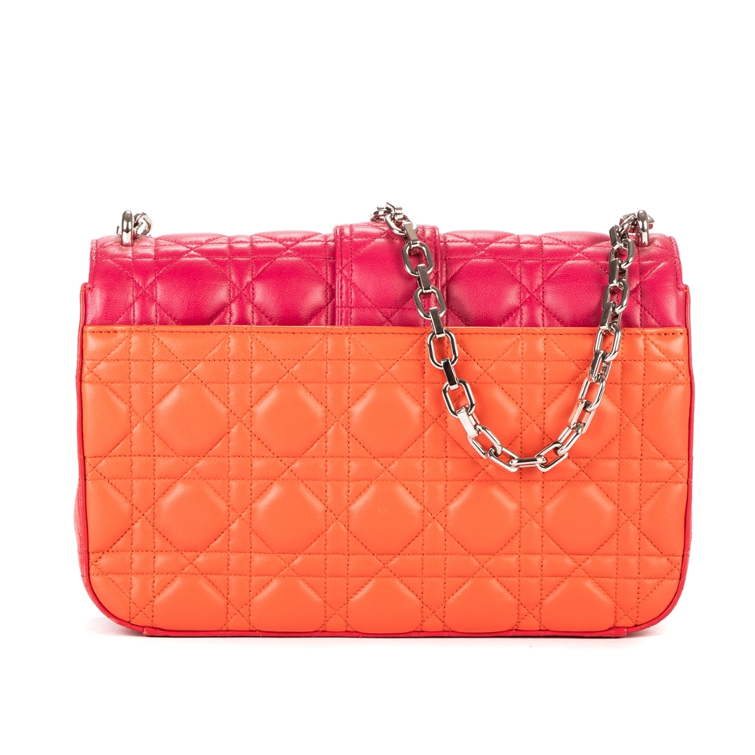 A vintage pink and orange calf leather Dior Miss Dior bag with a certificate of authenticity, Approximately 17.5cm height, 26cm width.