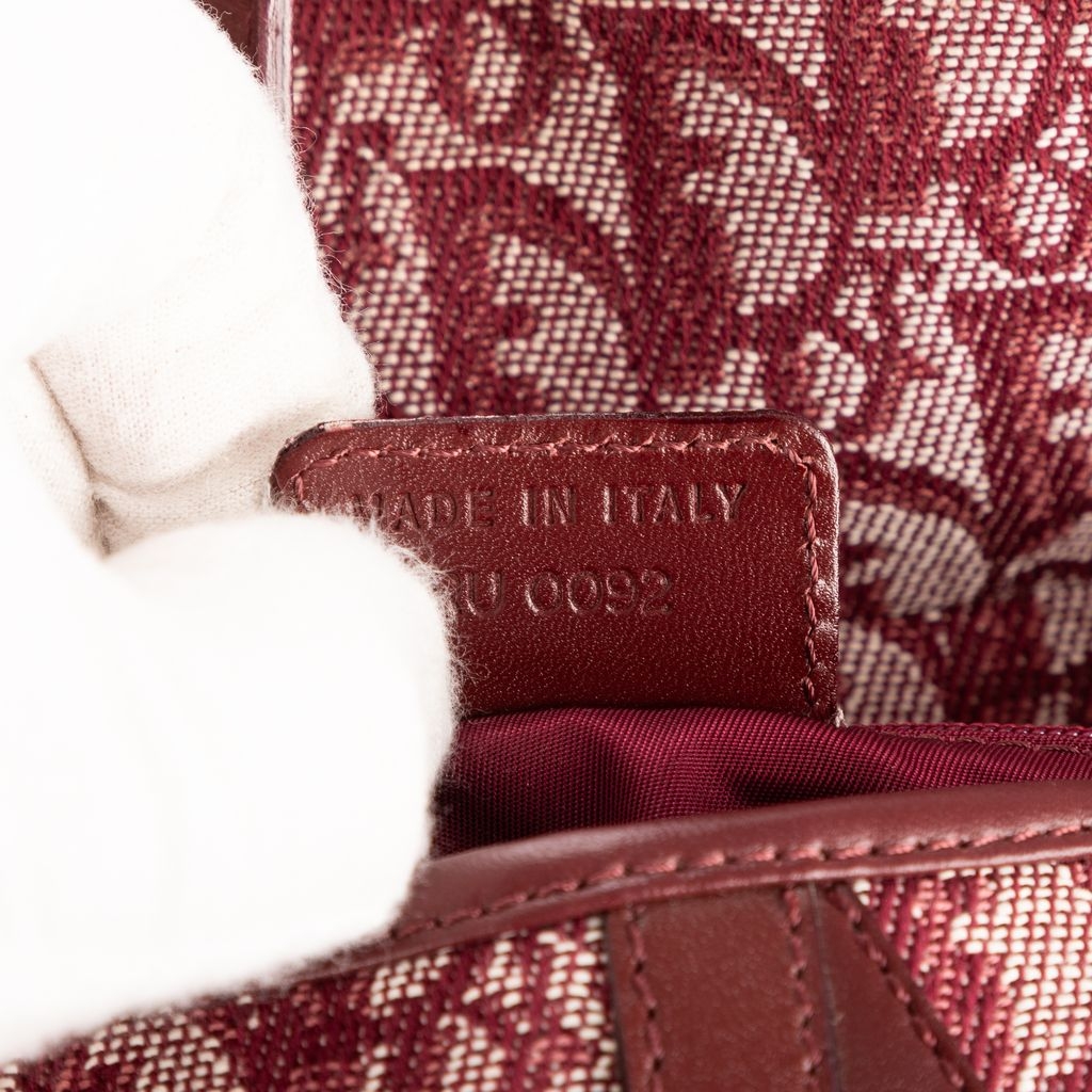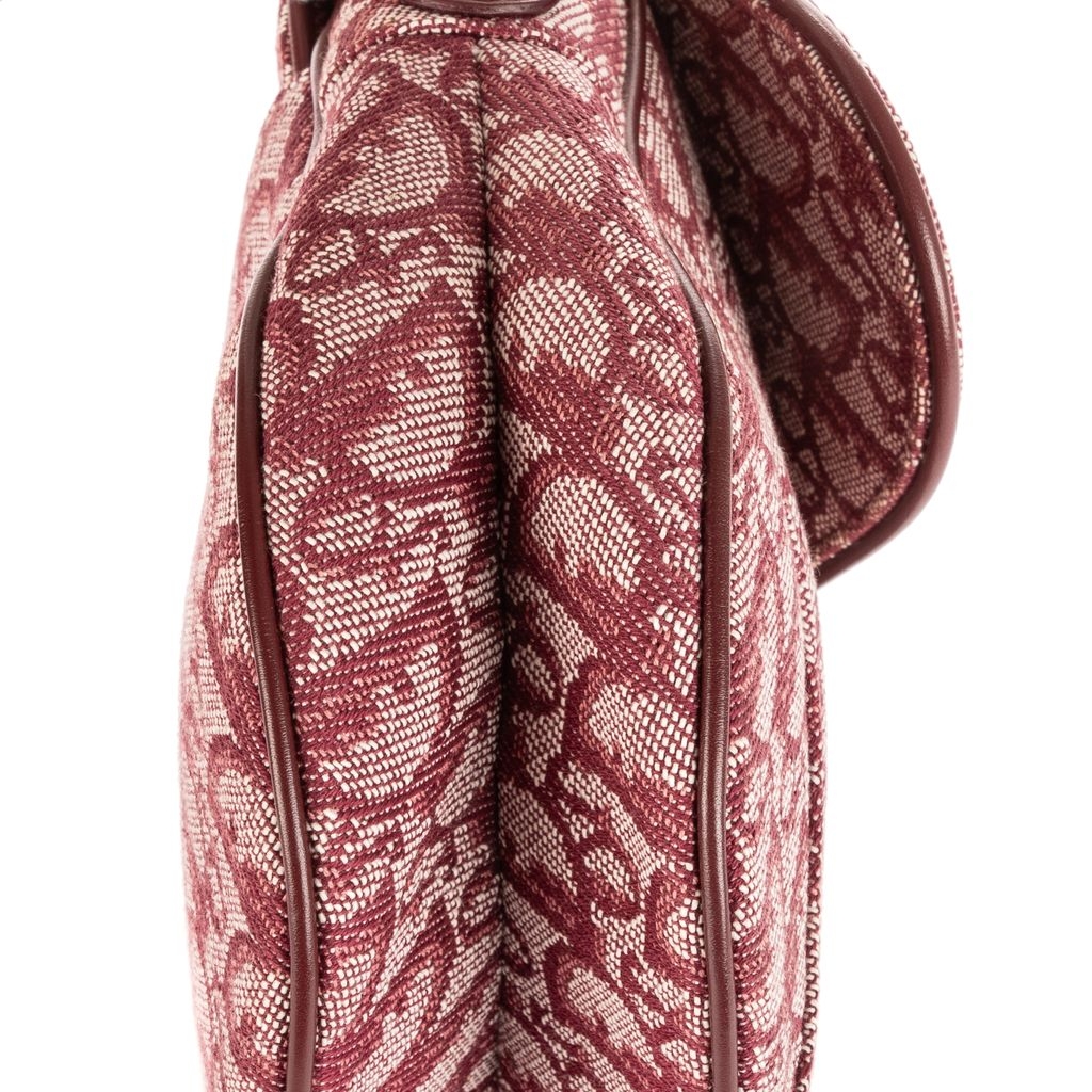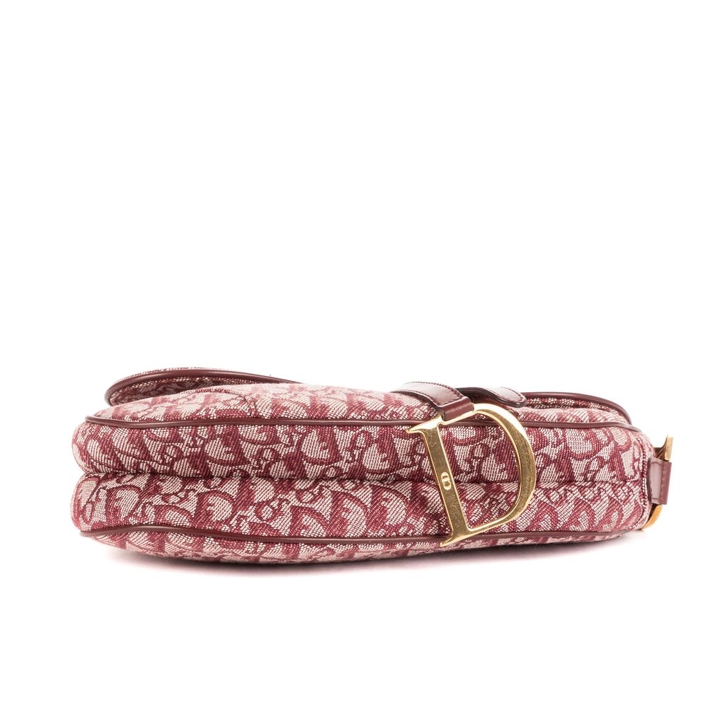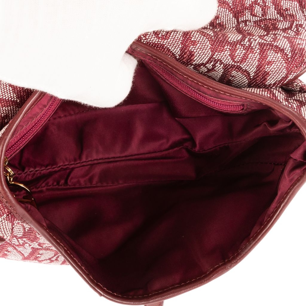 A vintage Dior bordeaux canvas Saddle Bag with a certificate of authenticity, Approximately 19cm height, 25cm width.