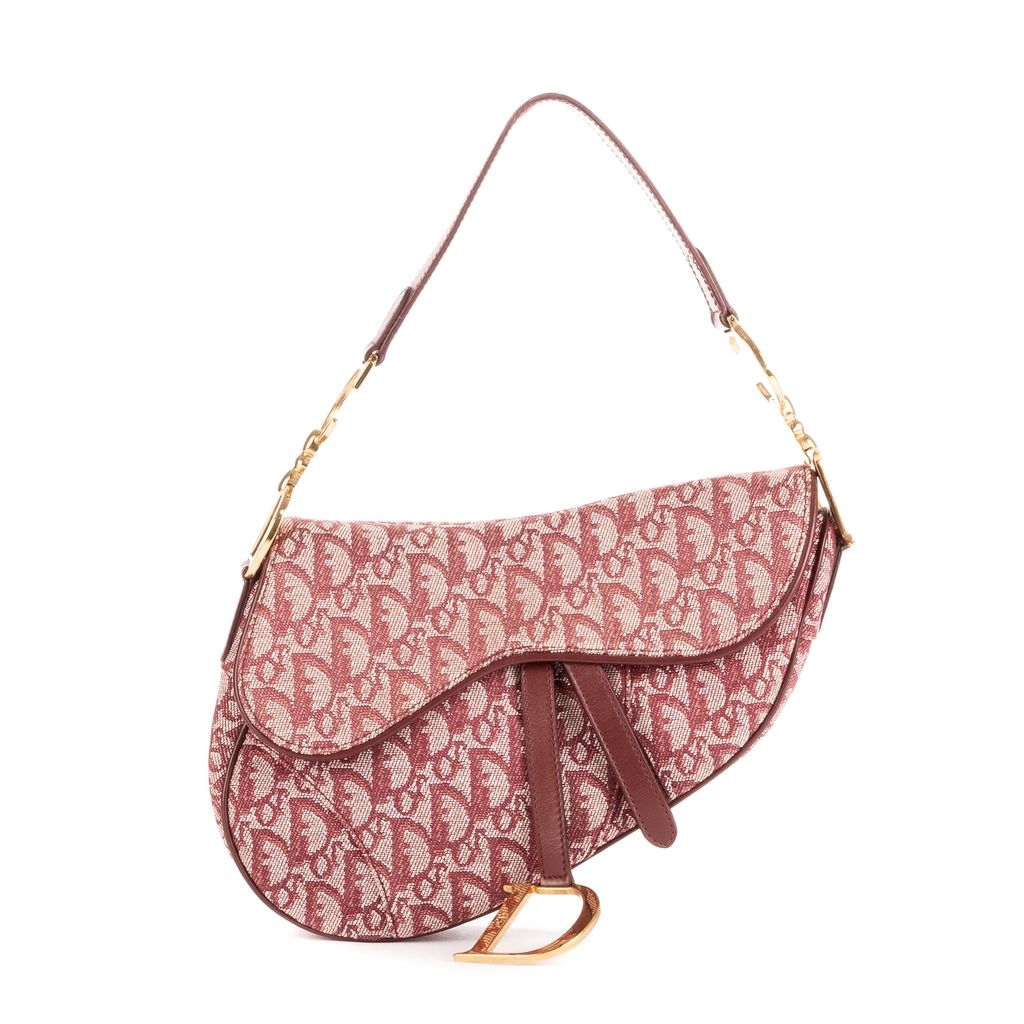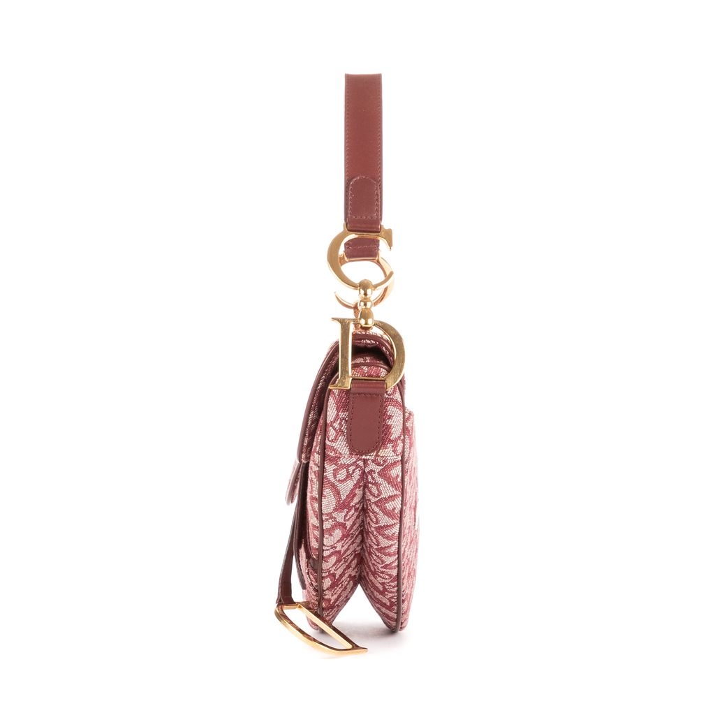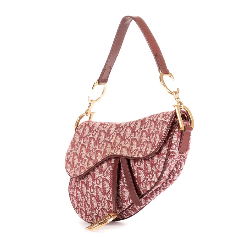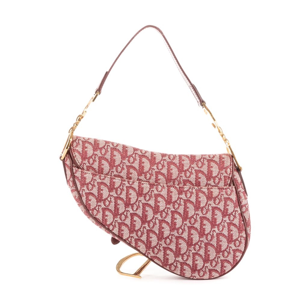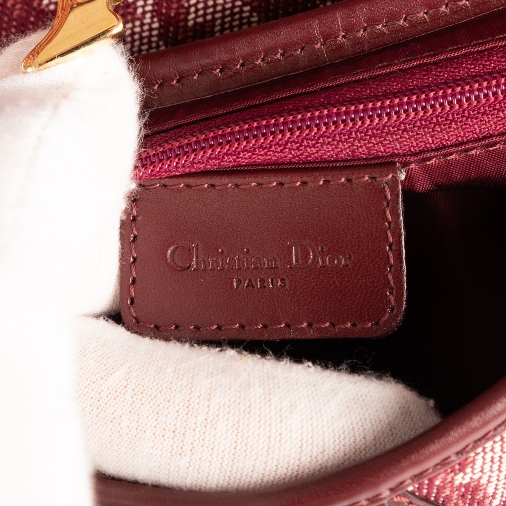 A vintage Dior bordeaux canvas Saddle Bag with a certificate of authenticity, Approximately 19cm height, 25cm width.