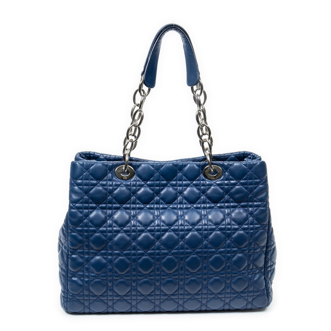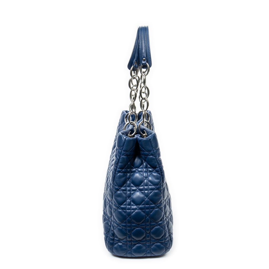 A vintage dark blue calf leather Dior Soft Shopping Tote bag with a certificate of authenticity, Approximately 27cm height, 35cm width.