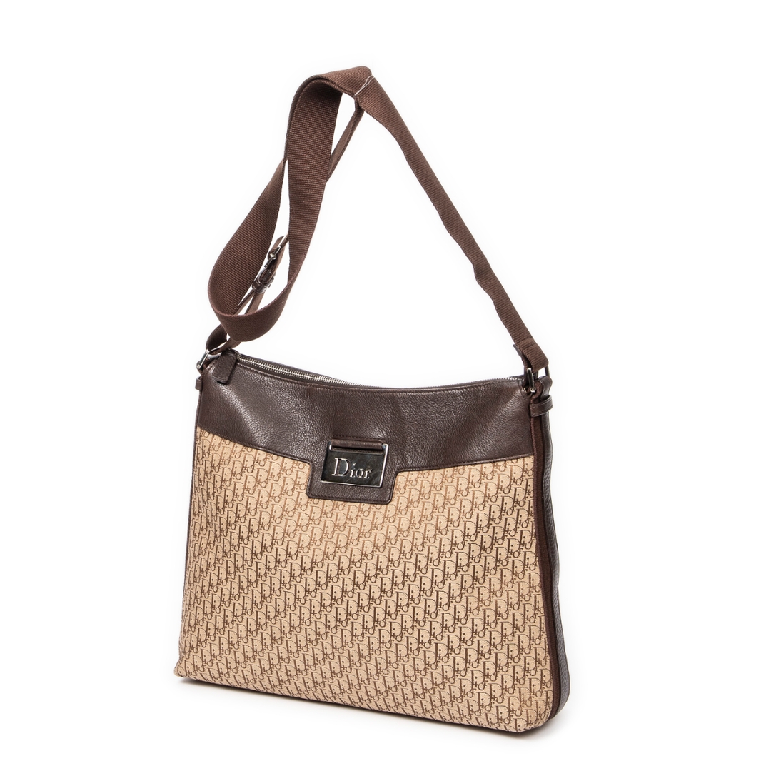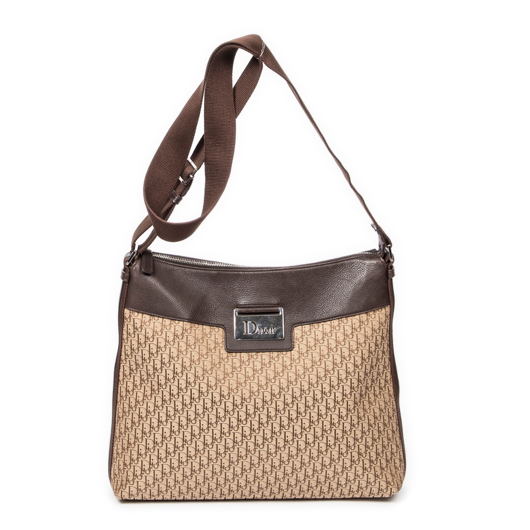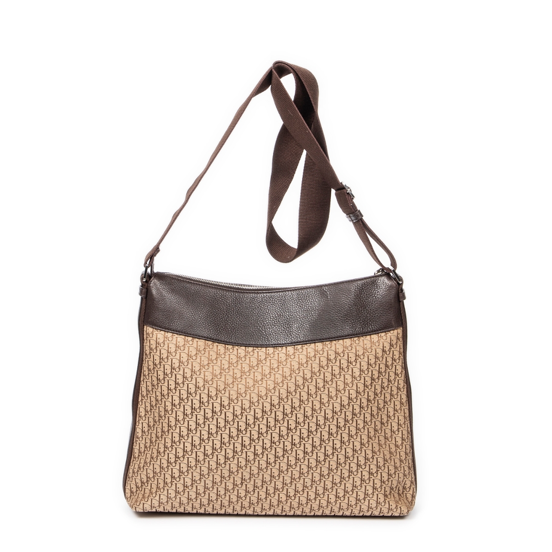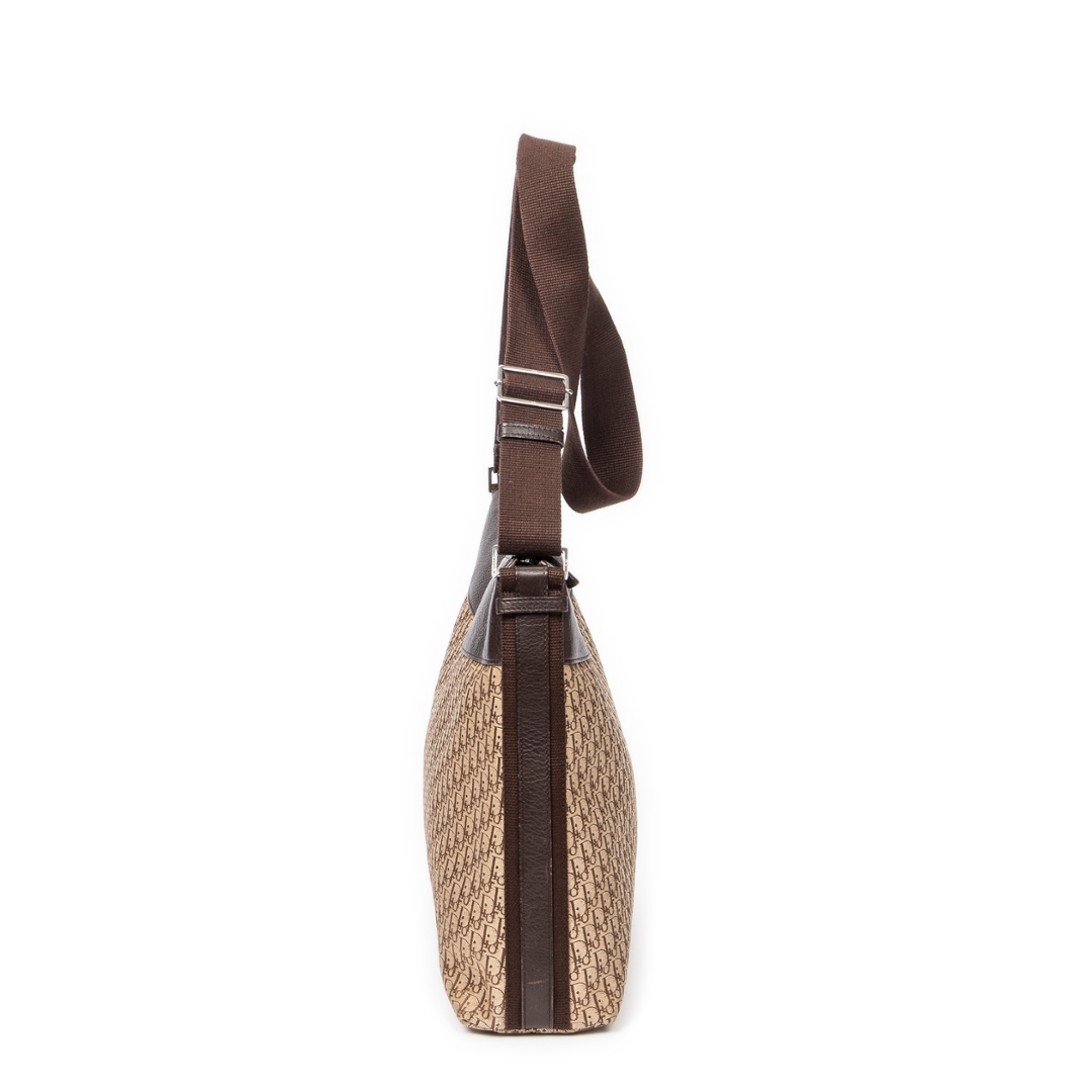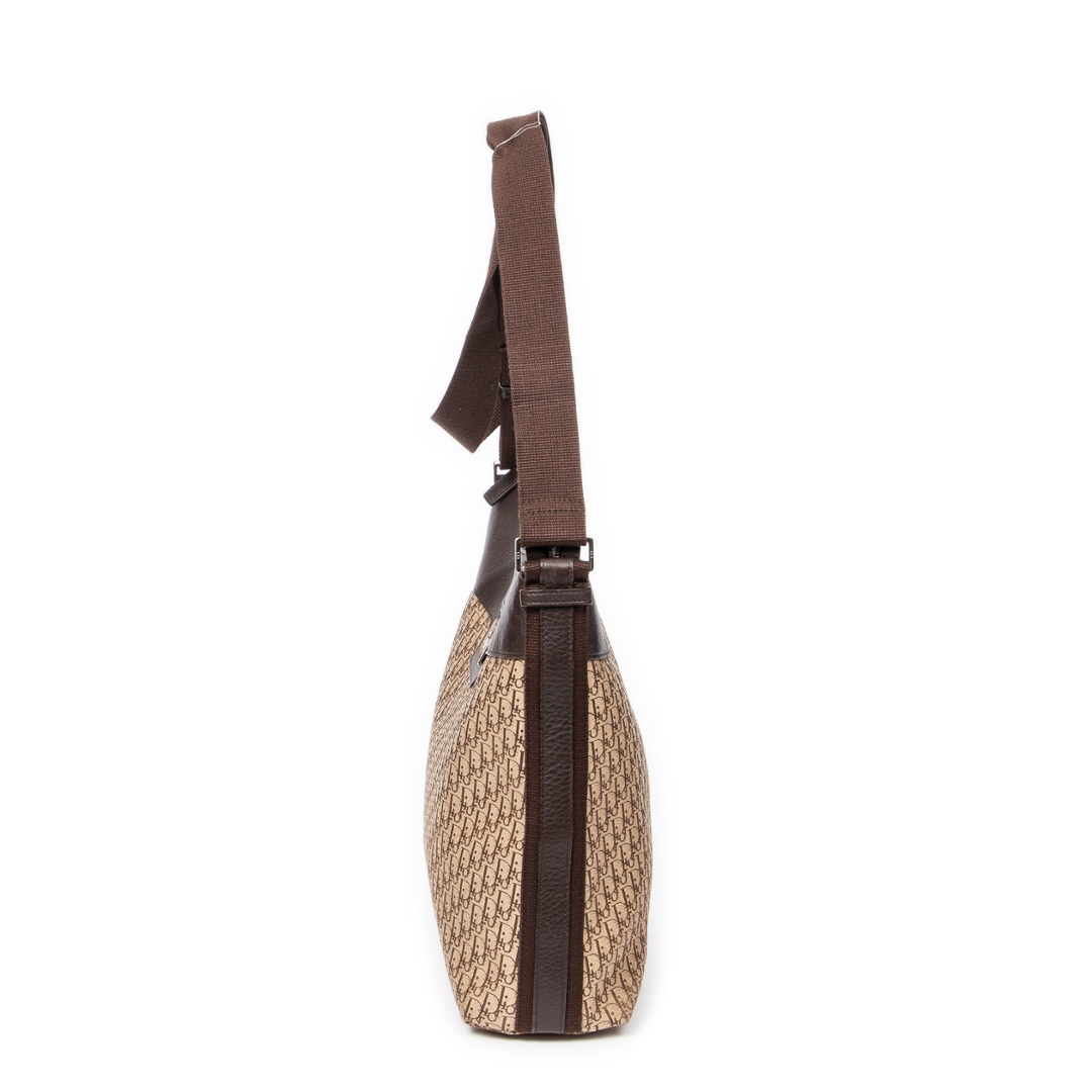 A vintage Dior beige/brown canvas Street Chic Messenger bag with a certificate of authenticity, Approximately 28cm height, 33cm width.