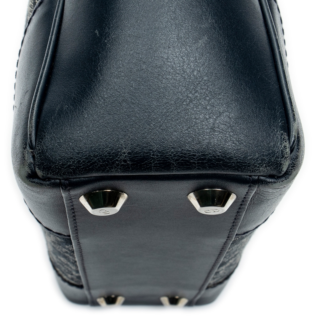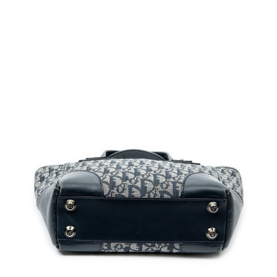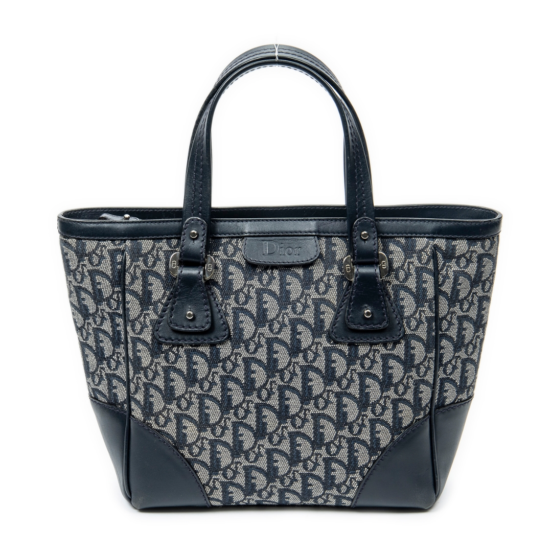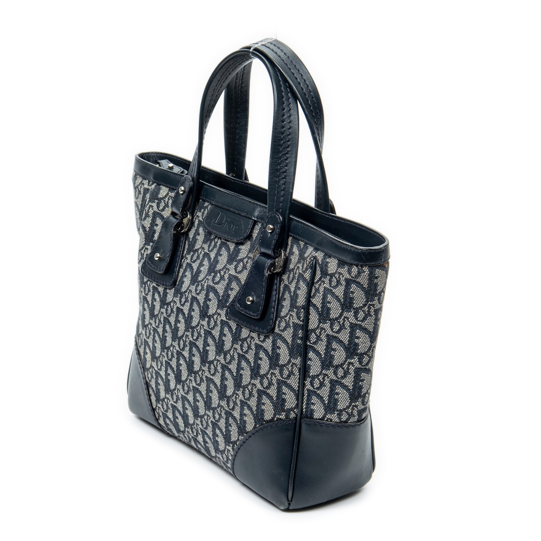 A vintage Dior navy/grey canvas Trotter Zip Tote bag with a certificate of authenticity. Approximately 23cm height, 25cm width.