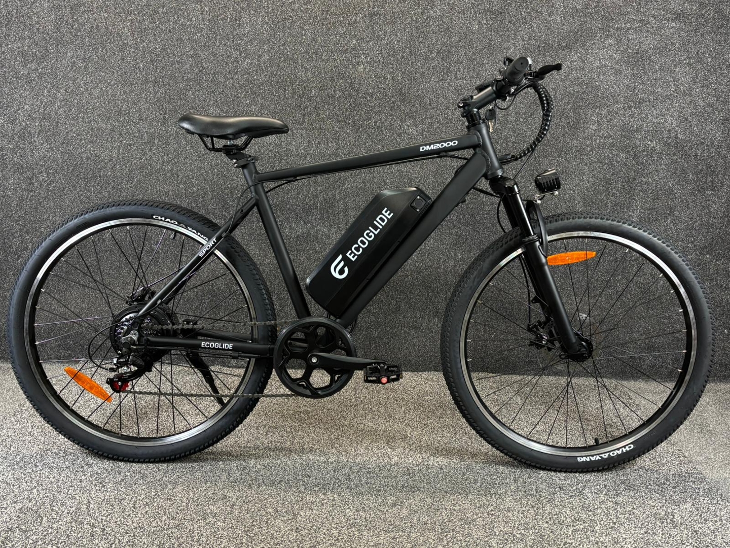 A brand new EcoGlide DM2000 Electric Bike, designed for riders who want everyday practicality paired with modern electric performance. Finished in a sleek black frame with clean lines, it offers a comfortable riding position that suits both commuting and leisure use. The integrated design keeps everything streamlined, while the sturdy build inspires confidence whether you’re riding through town or along cycle paths.