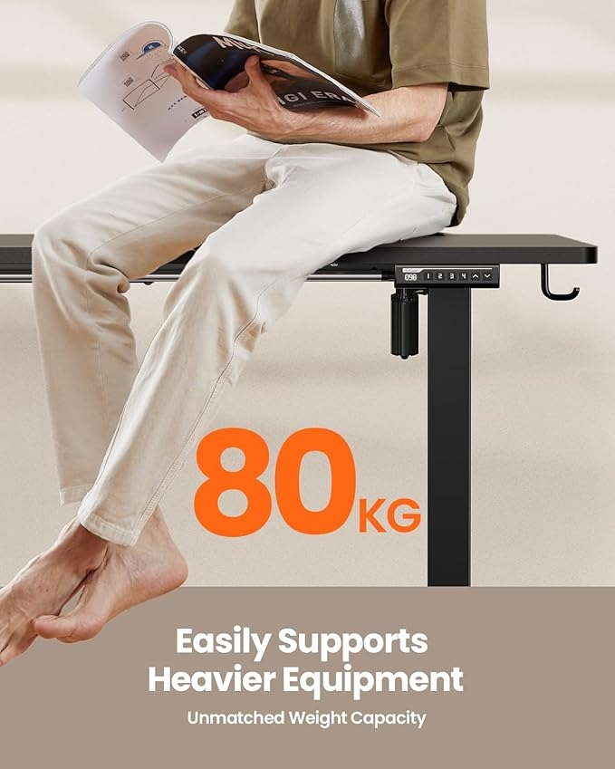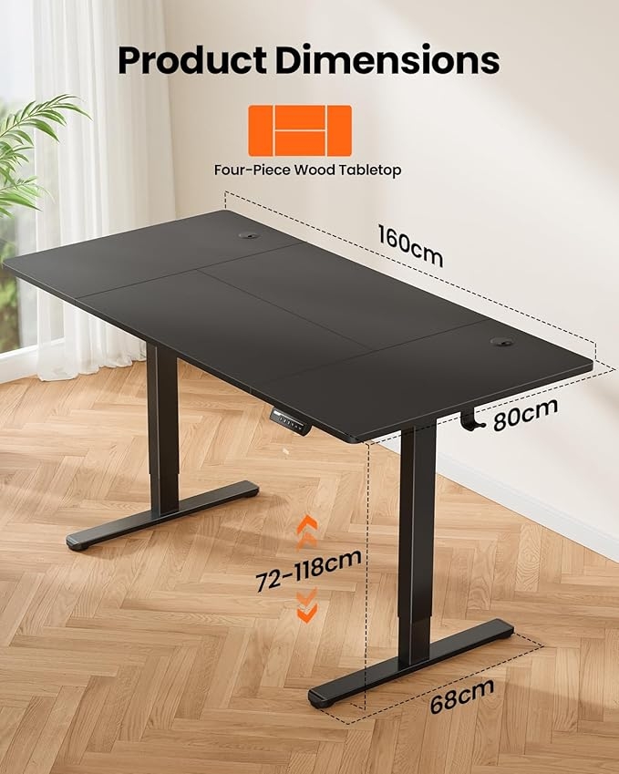 An ErGear Electric Standing Desk Height Adjustable 160 x 80cm, Sit Stand Desk with 4 Memory Smart Panel, Home Office Desk with Splice Board.